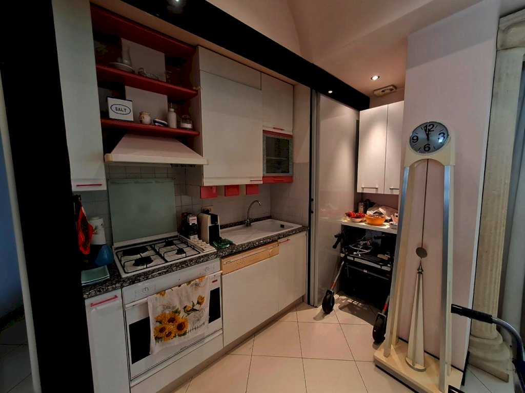 - Appartamento al piano secondo, di mq. 102 lordi, composto da ingresso con armadio a muro, cucina pranzabile con balcone (il mobilio della cucina rimane), soggiorno con camino e balcone, camera matrimoniale, bagno con vasca/doccia idromassaggio e finestra e ripostiglio uso lavanderia.
