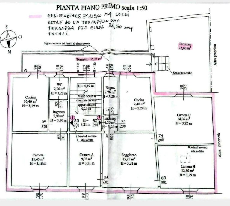 Piano primo 2 APPARTAMENTI CON TERRAZZA DI MQ 35, UNO composto da: ingresso, soggiorno-cucina con accesso al terrazzo, camera matrimoniale e bagno finestrato. IL SECONDO appartamento di circa 85mq composto da: ingresso, cucina abitabile, soggiorno, due camere matrimoniali e bagno.