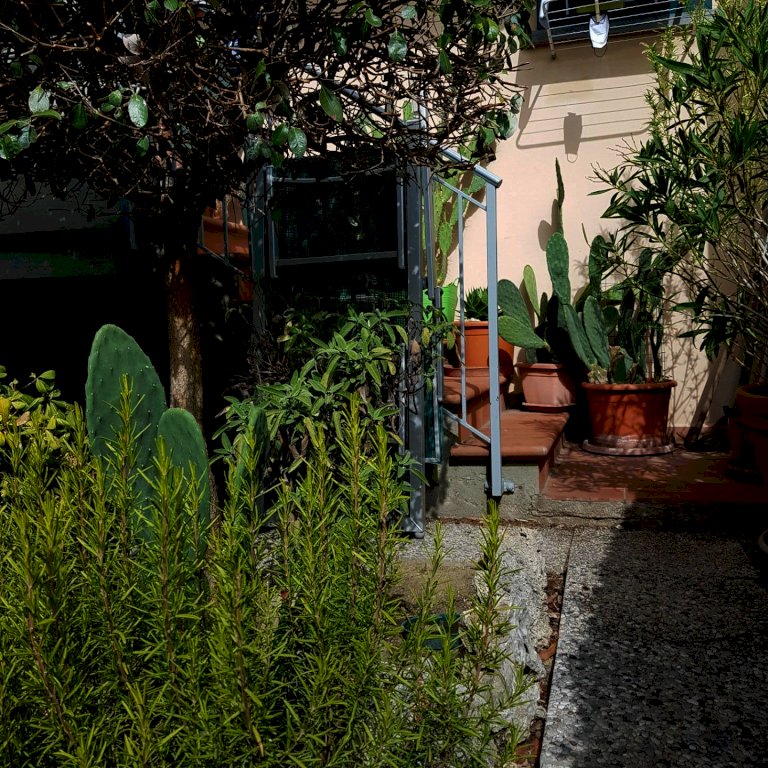 San Miniato Basso - San Miniato Terratetto in vendita al quale si accede da ingresso indipendente; al piano terra rialzato abbiamo il soggiorno con portafinestra per accedere al balcone, anche la cucina abitabile ha un balcone che porta al giardino tergale, ed il bagno zona giorno. Al primo piano troviamo una camera matrimoniale, una cameretta, lo studio ed il bagno con vasca. Completano l'appartamento un vano generico seminterrato adibito a taverna, un ampio garage e il vano lavanderia.