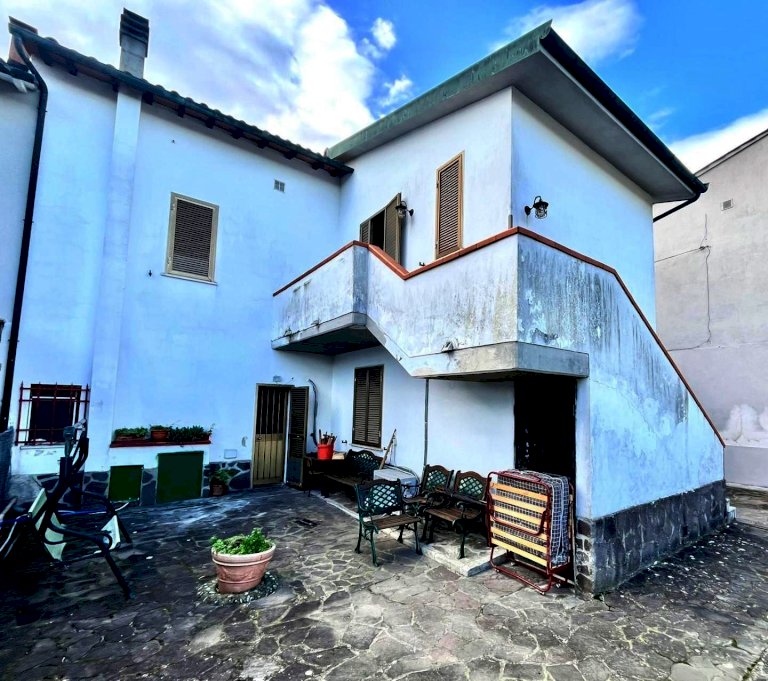 SAN ROMANO (San Miniato) - In prossimità del centro di San Romano, sulla strada principale, si propone in vendita una porzione angolare di fabbricato, da terra a tetto, disposta su due livelli e composta da due unità abitative. Le due unità, una al piano terra e l'altra al piano primo, sono completamente da ristrutturare a livello di finiture e di impianti. L'abitazione al piano terra è composta da ingresso, soggiorno con angolo cottura, bagno e due ulteriori vani. Quella al piano primo, con accesso da scala esterna e terrazzo d'ingresso, è composta da cucinotto-tinello, soggiorno, disimpegno notte, due camere, ripostiglio e bagno. Completano la proprietà, sul retro del fabbricato, un resede pavimentato a comune tra le due unità, un giardino recintato e un terreno di circa 2.300mq coltivato ad uliveto.