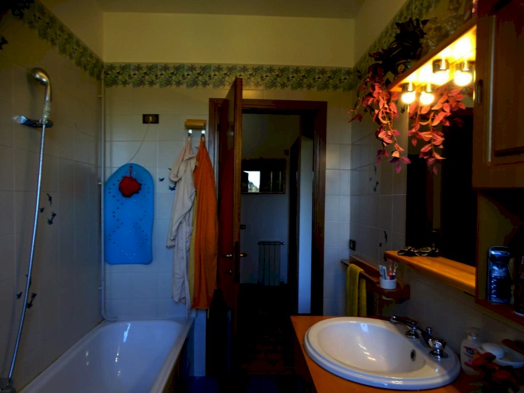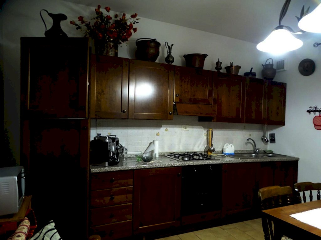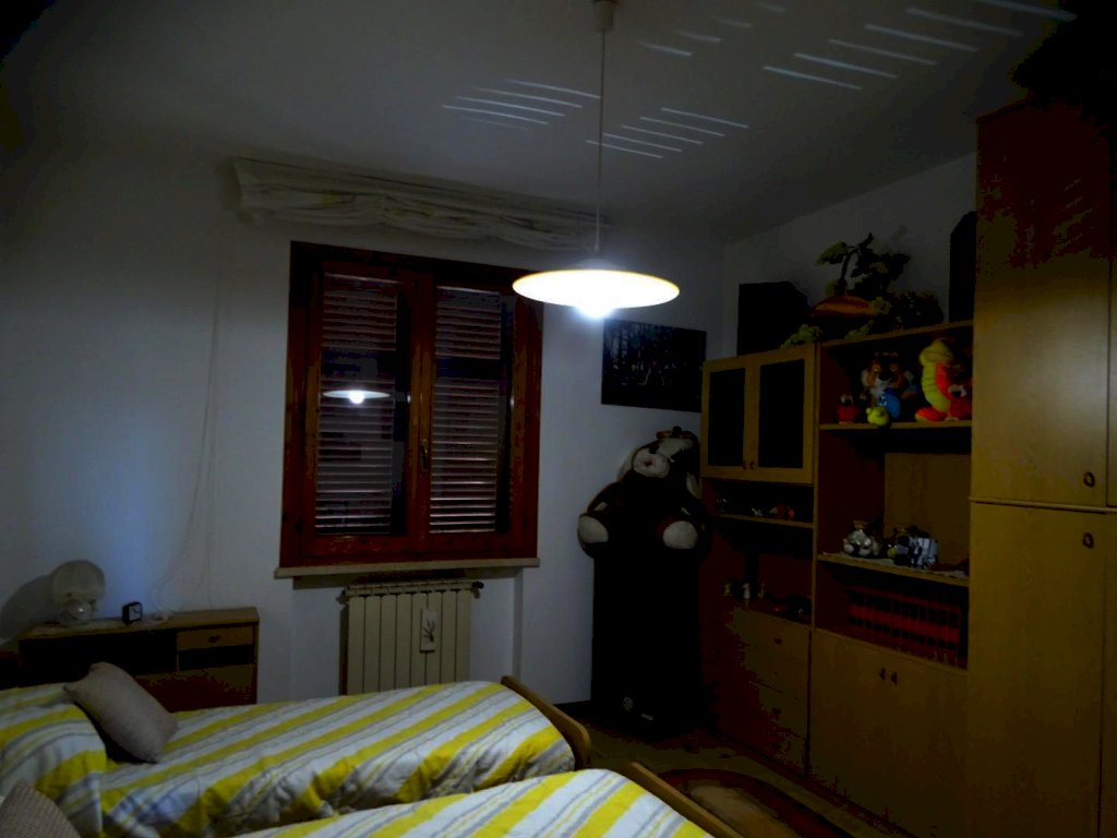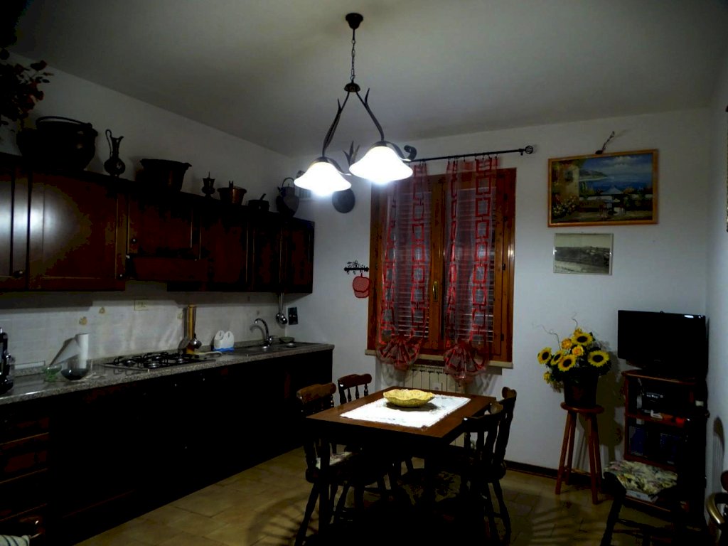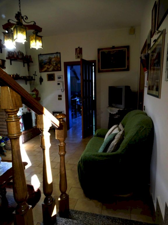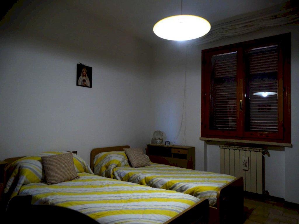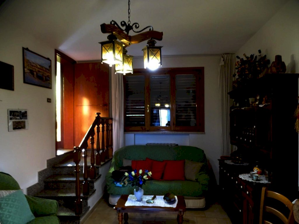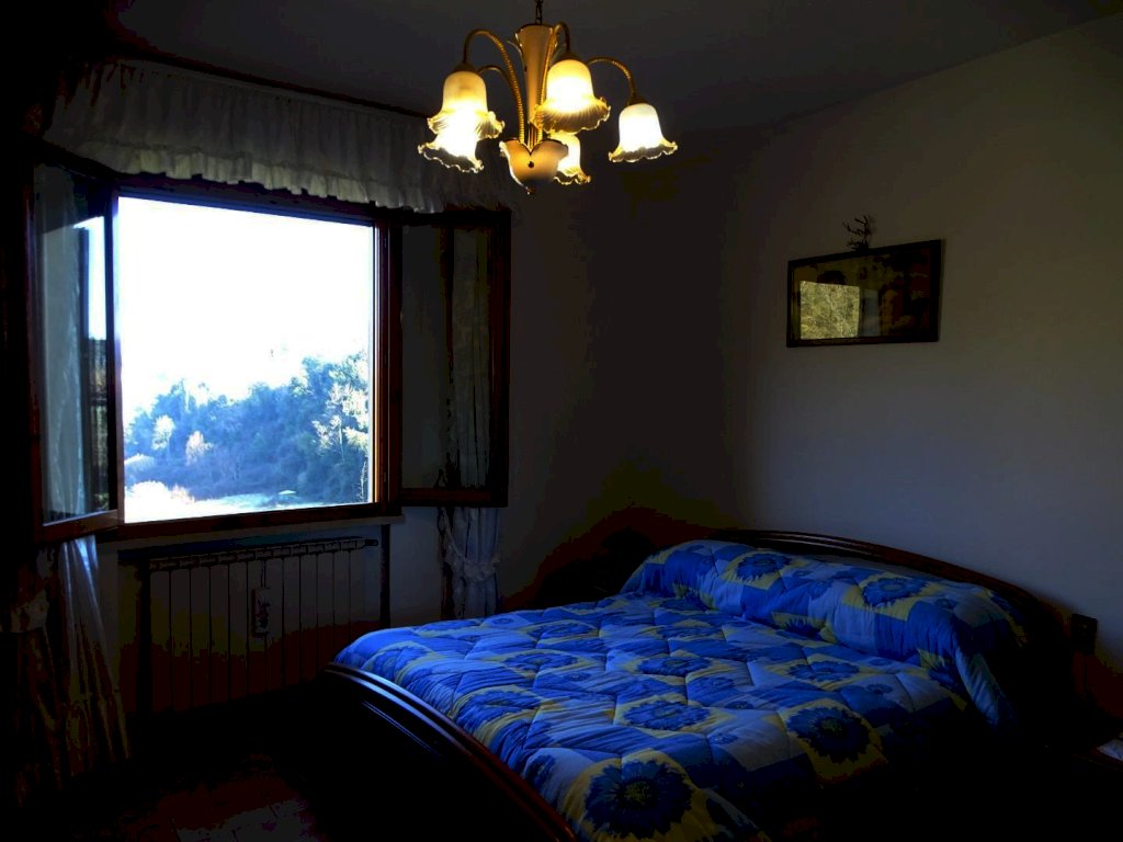 Nelle vicinanze del centro abitato, vendesi terratetto di circa 180 mq. complessivi, disposto su due piani, parte centrale di un casolare comprendente altre due abitazioni, posto sulla sommità di una collinetta, con vista sulla campagna circostante. Accesso da strada privata con cancello, ampio resede tutt’intorno all’edificio, con parco alberato (spazi in parte a comune) e due ettari e mezzo di terreno agricolo di proprietà esclusiva.