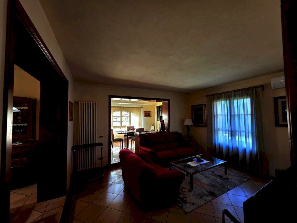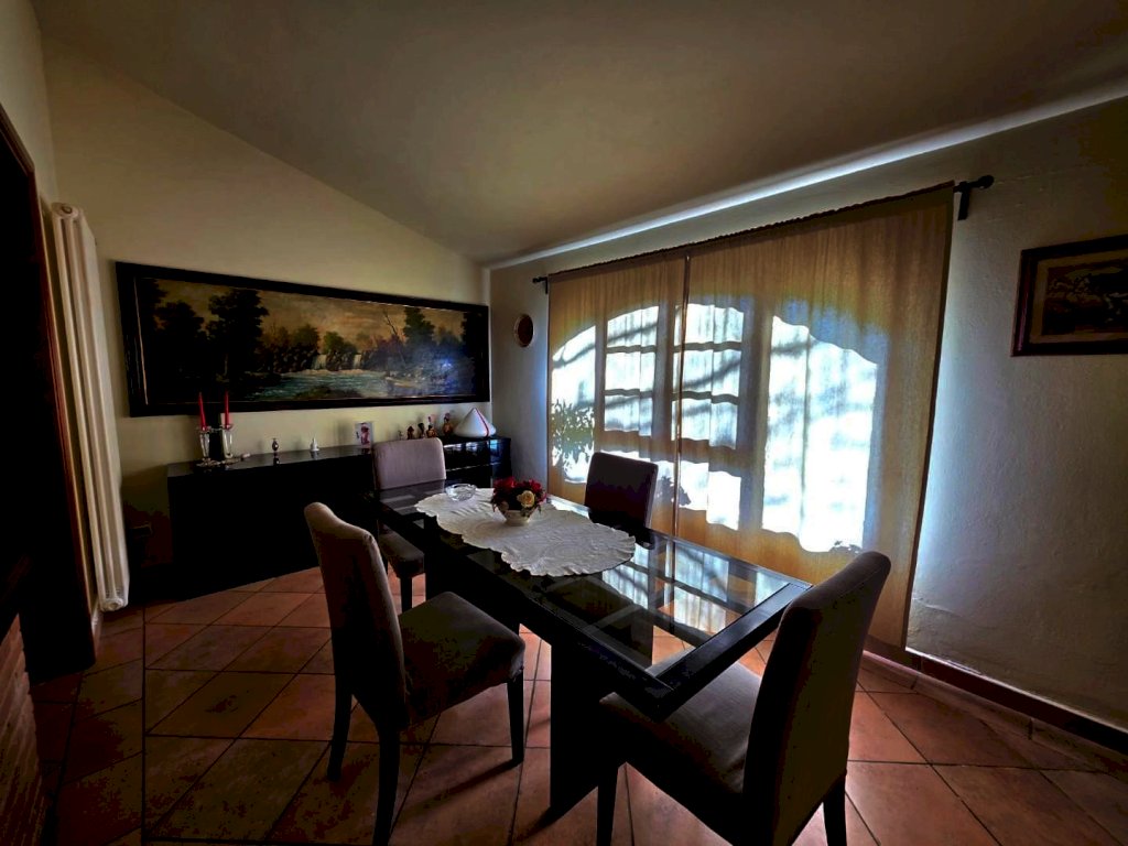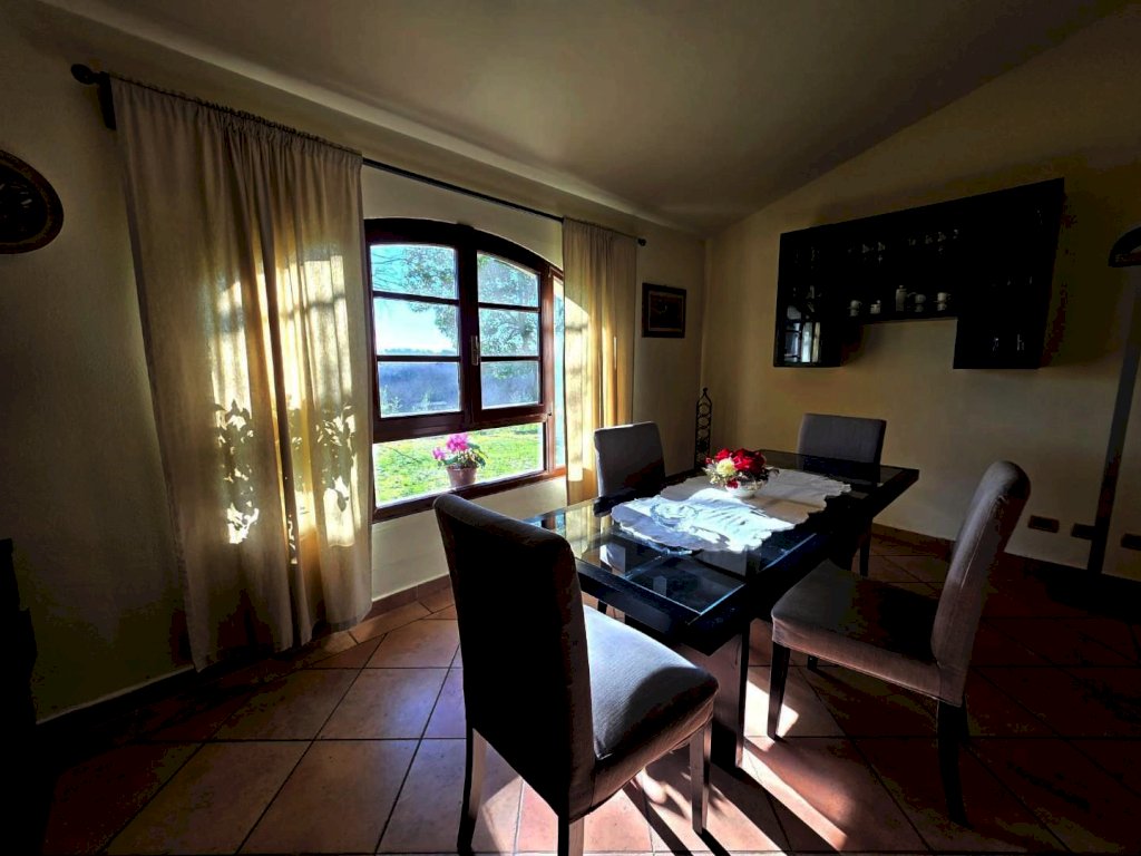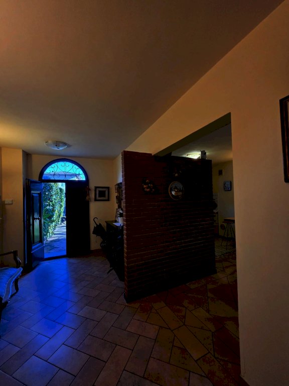 Un caratteristico marciapiedi in mezzane rifinisce esternamente tutta la struttura. Al piano terra, dove ogni spazio è stato curato con gusto per garantire un'abitazione confortevole e ricca di dettagli caratteristici, troviamo l'ingresso, la sala da pranzo con cucina a vista, un ampio salone in cui sono stai creati due spazi distinti, con bella vetrata che si affaccia sul giardino, un comodo ripostiglio lavanderia e un garage adiacente di 16 mq.