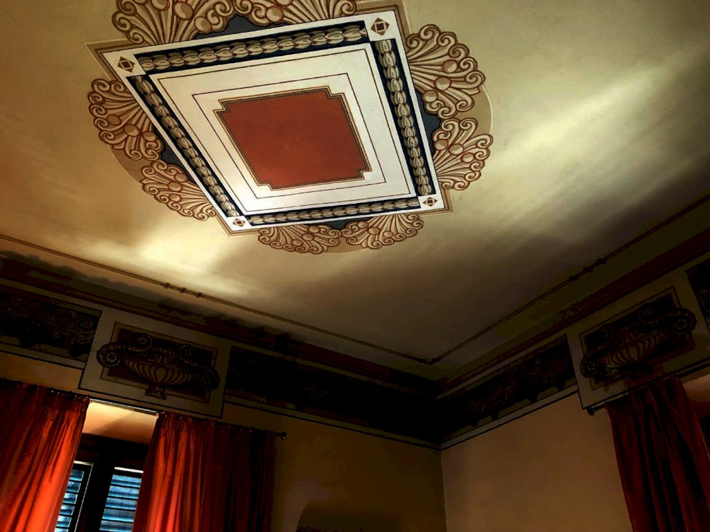 Il piano rialzato è composto da soggiorno, cucina defilata con camino, due camere matrimoniali, due bagni di cui uno attualmente usato come lavanderia, e terrazze panoramiche. Il piano primo invece, è composto da un bellissimo soggiorno affrescato, cucina separata abitabile, tre grandi camere, ripostiglio/guardaroba, e un bagno.