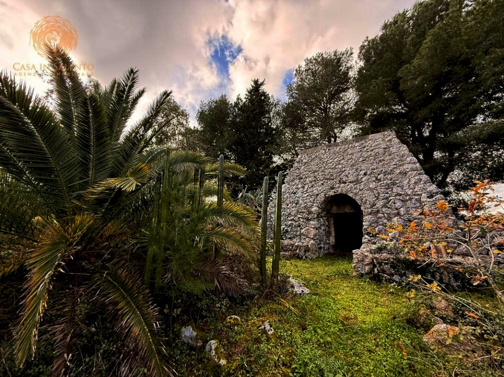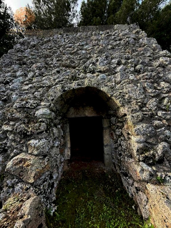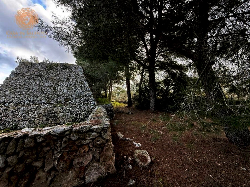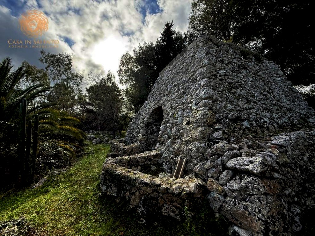La proprietà si estende su circa 3.300 mq di terreno di pertinenza, caratterizzato da tipica forma angolare e delimitato in parte da tradizionali muretti a secco, elementi distintivi del paesaggio rurale locale. Il terreno, pianeggiante e facilmente accessibile, è ideale per chi desidera vivere o investire in un contesto di tranquillità assoluta, circondato dalla macchia mediterranea e da ulivi secolari.