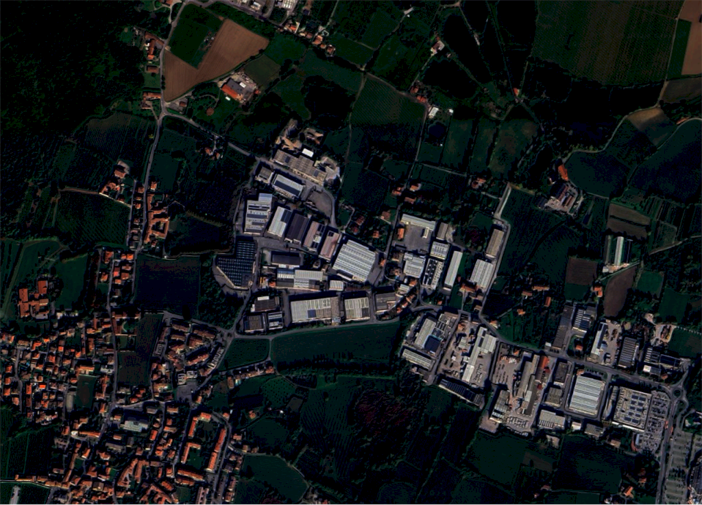 L'area destinata a corte scoperta, parcheggio, collocata all'interno di un complesso immobiliare a destinazione mista produttiva e commerciale.