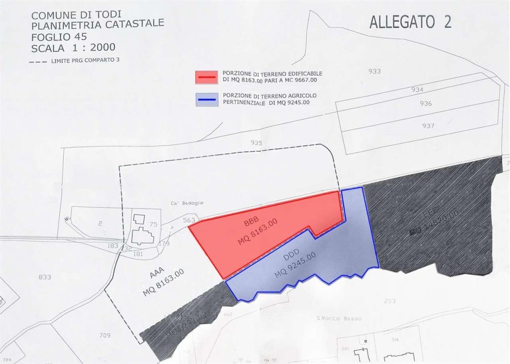 - Superficie: ampio lotto di circa 17'500 mq, di cui 8163 mq edificabili e 9245 mq agricoli. Cubatura edificabile 9667 mc.