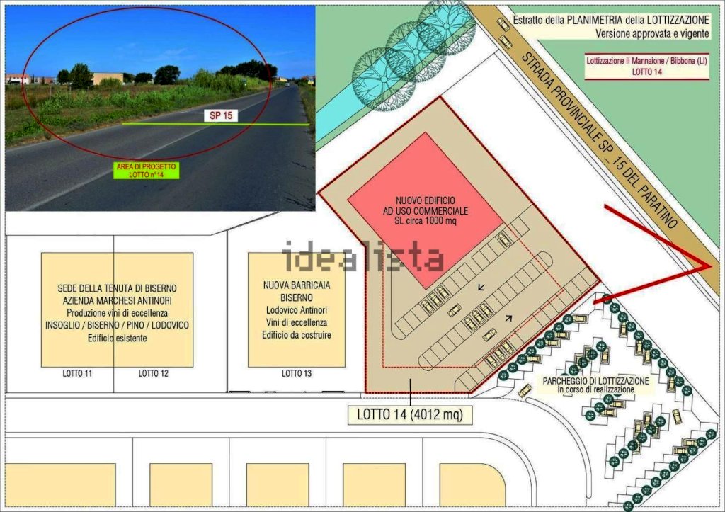 Lotto di terreno edificabile di mq 4012, copribile per il 50%, destinazione commerciale per 1/2 (mq 1000) e artigianale-industriale per l'altro 1/2 (mq 1000). Il lotto e' in corso di urbanizzazione. Vista la posizione e la comoda accessibilita', la distanza da cecina di 5 km, la struttura da realizzare si presta per l'apertura di attivita' di grande distribuzione, in particolare nel settore alimentare o altri generi di largo consumo.