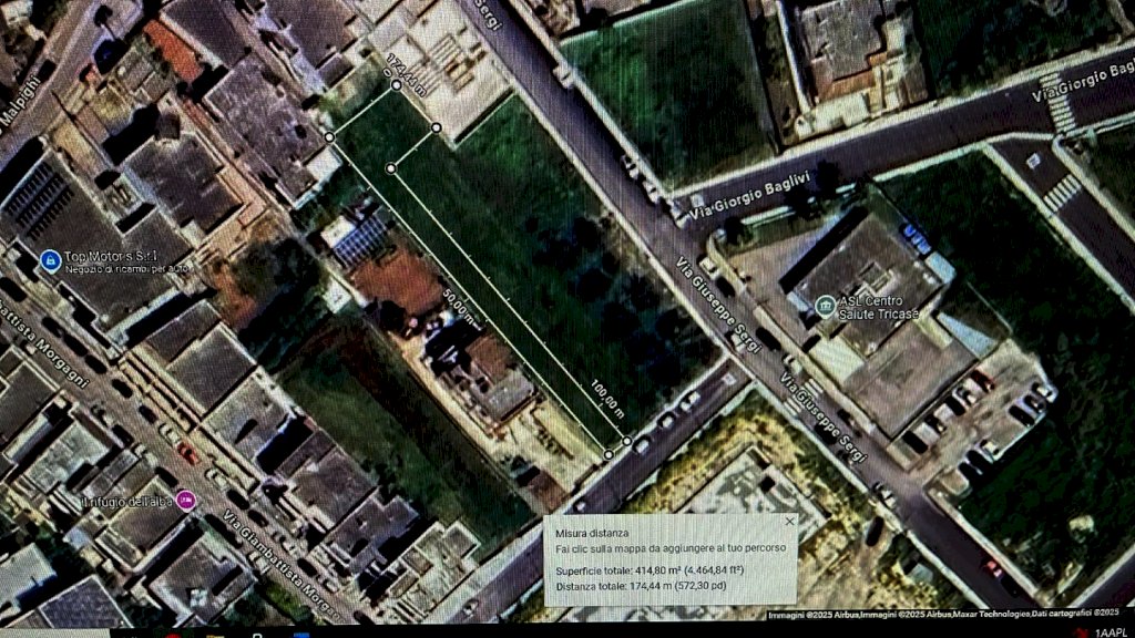 VENDESI a Tricase, lotto di terreno edificabile esteso per circa 414 mq ricadente in parte in zona "B" di completamento ed in parte in zona "C1" di espansione. Il terreno, composto da diversi lotti per un totale di 414 mq si trova in Via Giuseppe Sergi, in zona residenziale con accesso da strada cittadina e con tutte le utenze, compreso lo stradone di accesso. Il vigente strumento urbanistico prevede un indice di fabbricabilità fondiaria per la zona "C1" di espansione (128 mq) di 2,24 mc/mq, indice massimo di copertura 30% (richiesta lotto minimo); mentre per la zona "B" di completamento (286 mq), l'indice di fabbricabilità previsto è di 5,00 mc/mq ed un indice massimo di copertura del 70%. C.E.: “esente”.