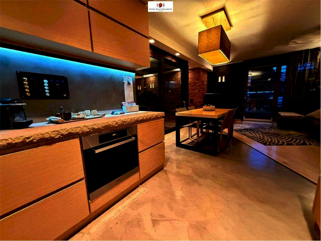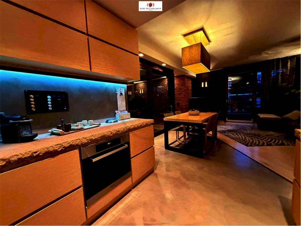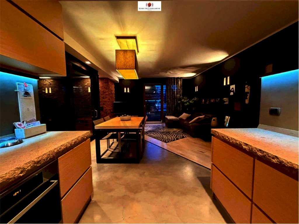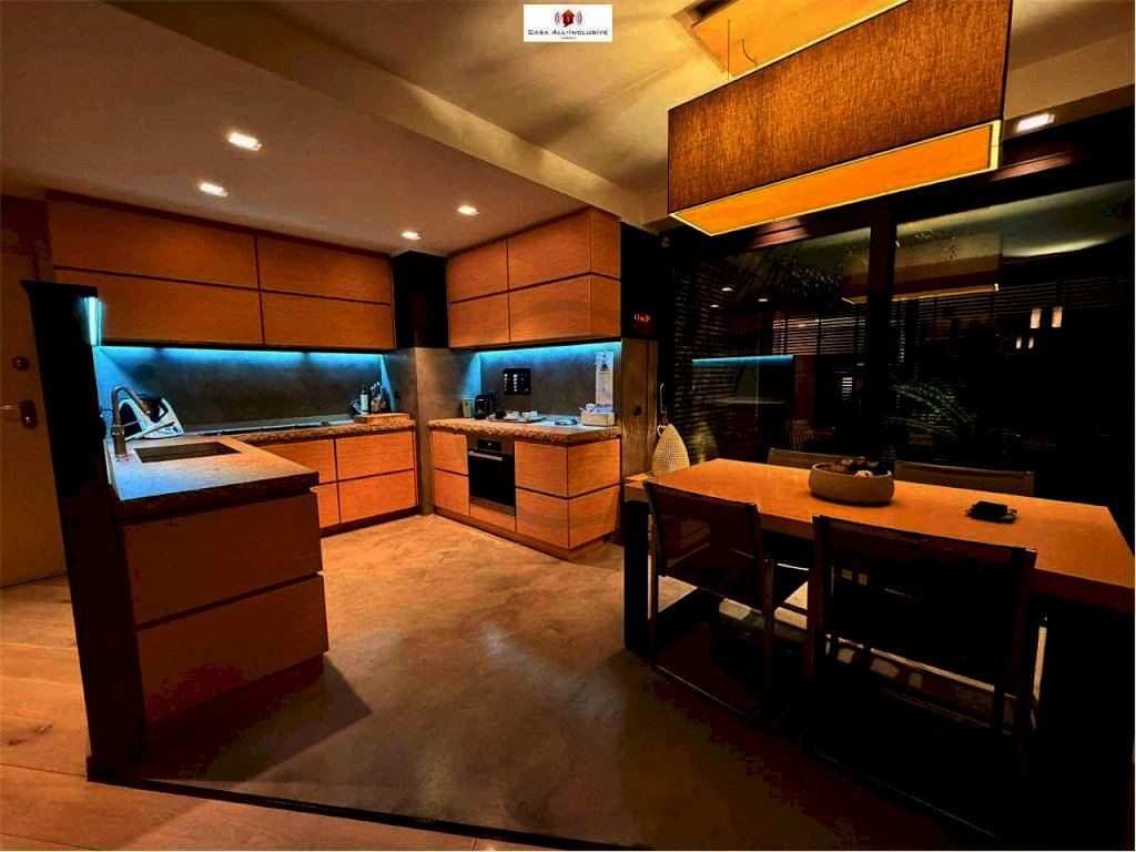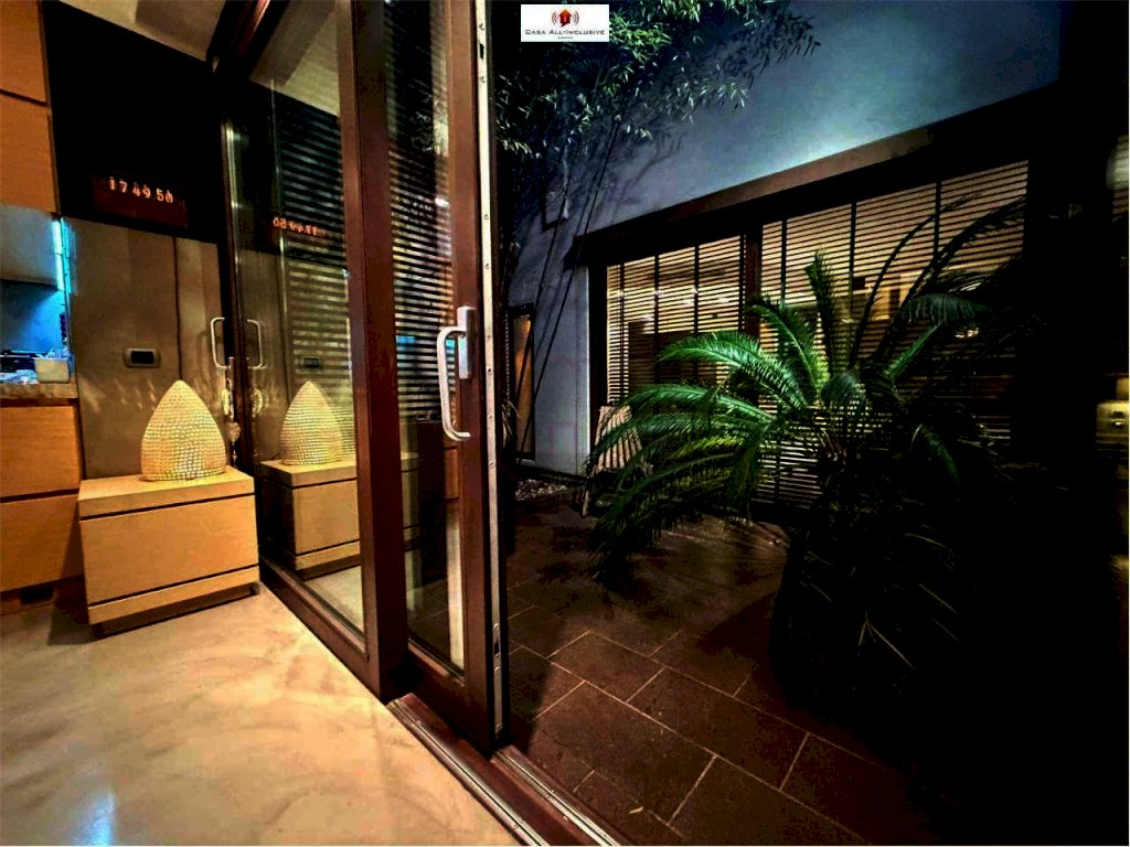 L'immobile è cosi composto: ingresso, ampio zona living con cucina abitabile a vista, due camere, due bagni, lavanderia, cabina armadio, un grande patio centrale utilizzato come giardino d'inverno;
