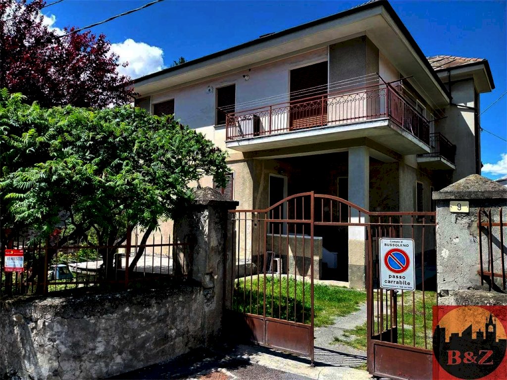 BUSSOLENO, Via Massimo D'Azeglio, immerso nel verde, vendesi appartamento al piano rialzato in palazzina con giardino privato (con annesso terrazzo), box auto singolo e cantina. E' stato ristrutturato internamente e offre una vista sui monti. E' vicinissimo alla stazione dei treni ed è dotato di filodiffusione per la musica, e di canna fumaria per camino o stufa.
