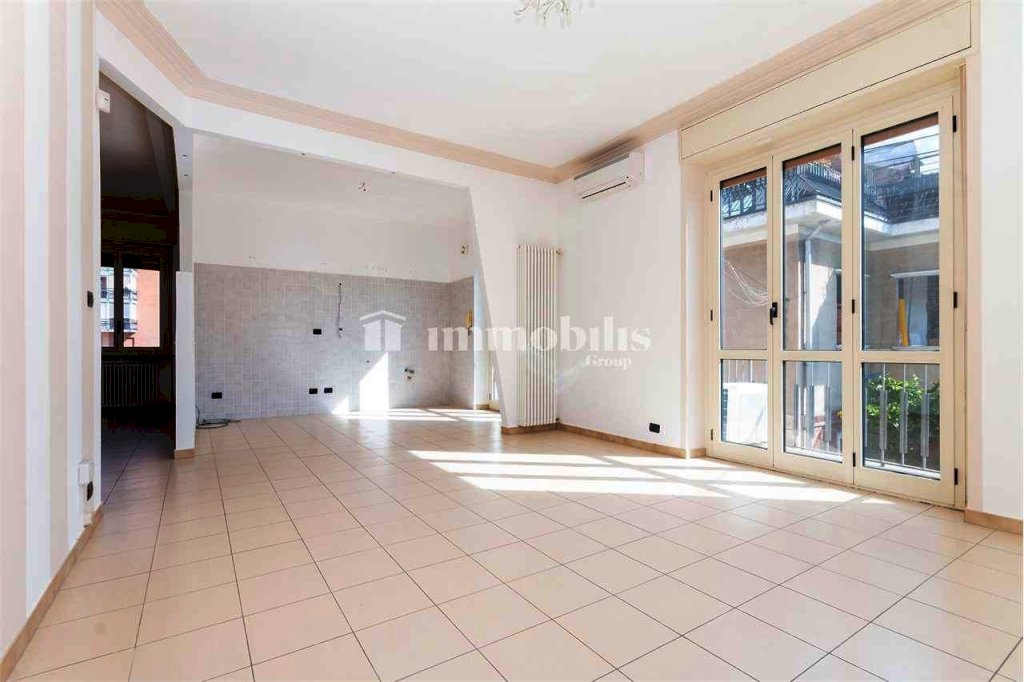 Entrando nell'appartamento, ci accoglie un ingresso funzionale, protetto da porta blindata, che si apre sulla vera protagonista della casa: una zona giorno molto spaziosa, perfetta per accogliere una cucina a vista con isola o penisola e una zona relax con divano e tavolo da pranzo. La luminosità è garantita da tre grandi porte finestre, ognuna con accesso a un balcone singolo, che rendono l'ambiente arioso e piacevole da vivere.