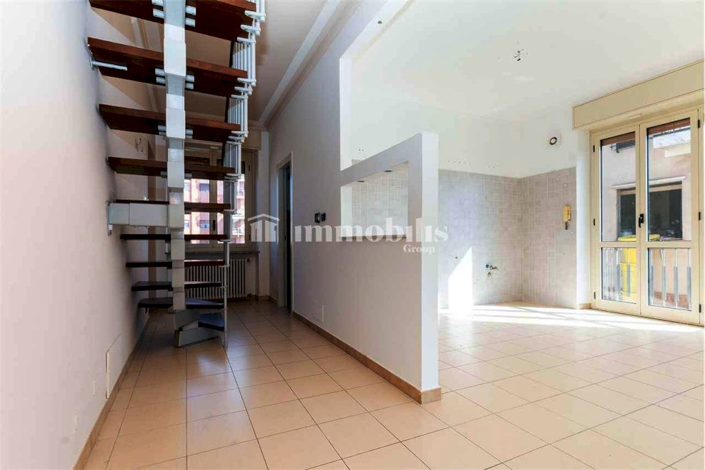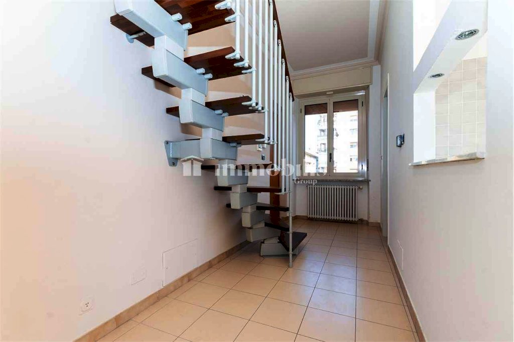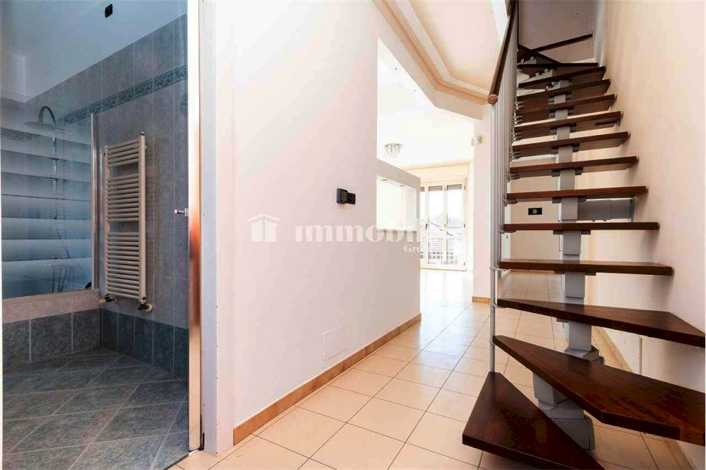 Un dettaglio che valorizza ulteriormente l'alloggio è la scala interna posta all'ingresso, che conduce al sottotetto rifinito: uno spazio versatile da adibire a studio, zona hobby o guardaroba.