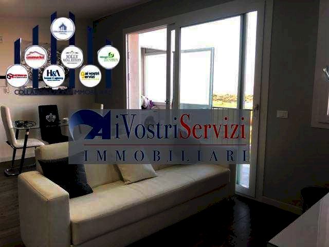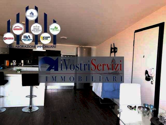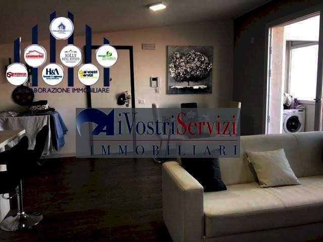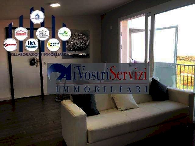 L'appartamento e' composto da : ingresso su ampia cucina-soggiorno, camera da letto, cameretta, bagno con box doccia e ampio balcone fronte soggiorno con lavanderia annessa.