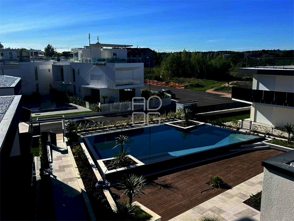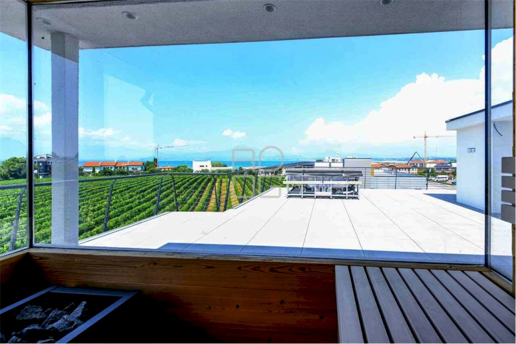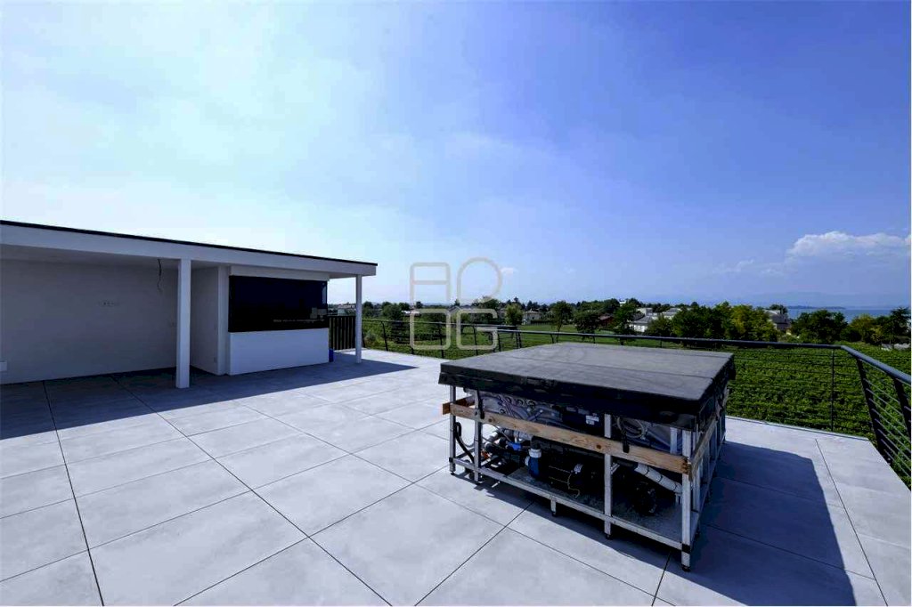 A San Benedetto di Lugana alle porte del Comune di Peschiera del Garda, in zona servita e comoda al lago ed alla spiaggia oltre che ai primari servizi, inserito in moderno e prestigioso contesto di nuova costruzione con piscina costituito da 18 unità abitative, proponiamo in vendita ampio Trilocale con grande sundeck privato da cui godere di splendida vista sul lago e sui vigneti. L'appartamento è composto da luminosa ed ampia zona giorno completa di cucina a vista e grande vetrata di accesso al primo ampio terrazzo; Tramite comodo disimpegno, raggiungiamo la zona notte composta da un bagno, una prima ampia camera da letto ed una grande camera padronale completa di bagno privato e balcone. Salendo la scala esterna privata, accediamo alla grande area sundeck con magnifica vista sul lago e sui vigneti attrezzata con vasca jacuzzi, sauna, doccia ed un bagno di servizio oltre ad un area ideale per realizzazione di zona living con cucina esterna. Finiture di alta qualità che possono essere personalizzate dal cliente in base ad un capitolato di ottimo livello. Complesso con spese di gestione contenute. Completa la proprietà, al piano interrato, un comodo garage. Possibilità di acquisto di una cantina in aggiunta al prezzo indicato. Restiamo a disposizione per ulteriori informazioni e sopralluogo.