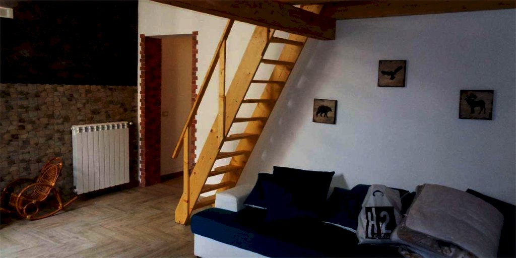 SOGGIORNO CON AMPIA AREA LIVING CON ZONA SUPERIORE SOPPALCATA CHE OLTRE AD AMPLIARE IL CALPESTABILE EFFETTIVO ,ACCOGLIE UNA PRIMA CAMERA DA LETTO, CAMERA DA LETTO MATRIMONIALE, CUCINA ABITABILE , BAGNO NONCHE' UN SOTTOSCALA ADIBITO A RIPOSTIGLIO.