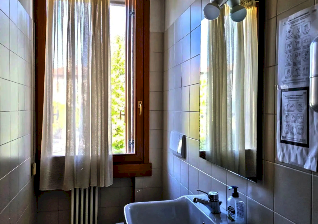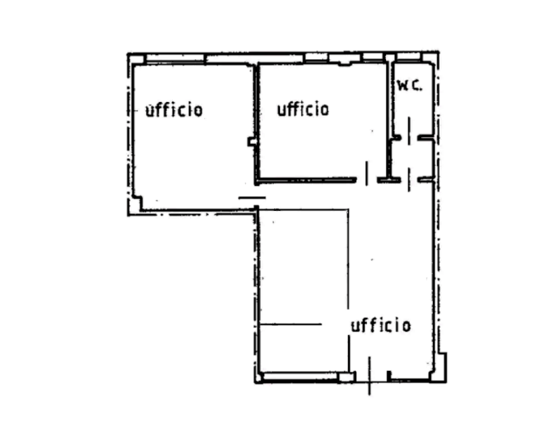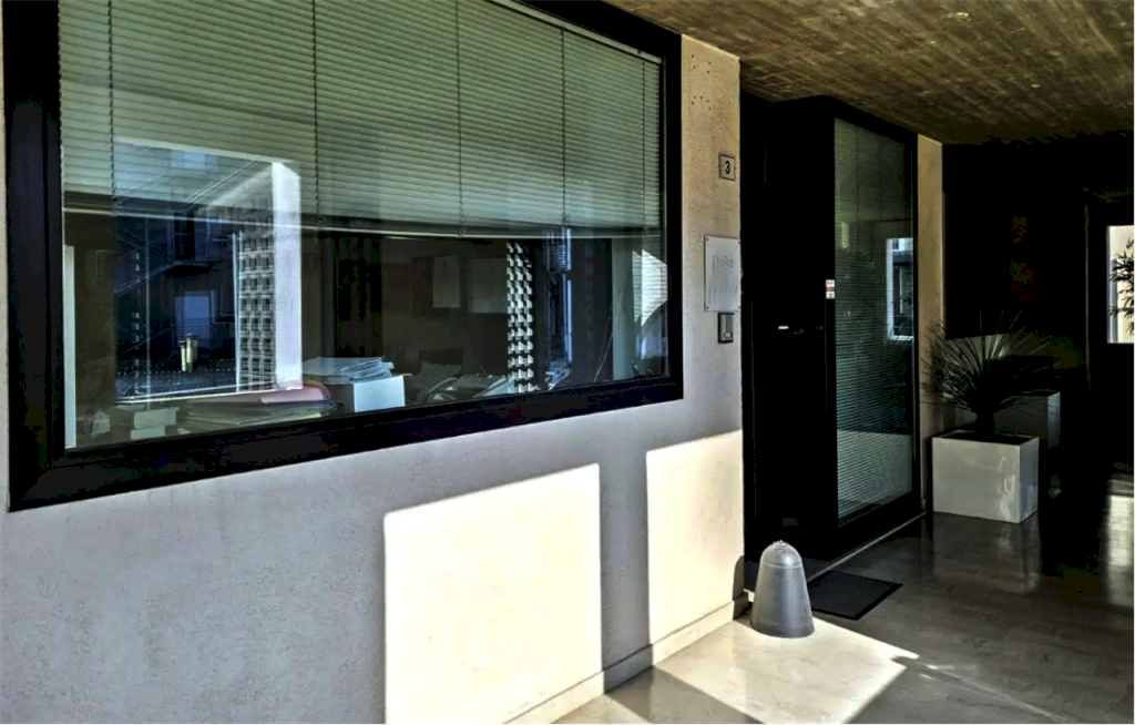 Ufficio al primo piano con annesso garage situato ad Arzignano (VI), in via Asilo Bonazzi, composto da un ampio vano, ingresso separato da pareti in vetro da rimuovere, due ulteriori vani uffici, antibagno con bagno.