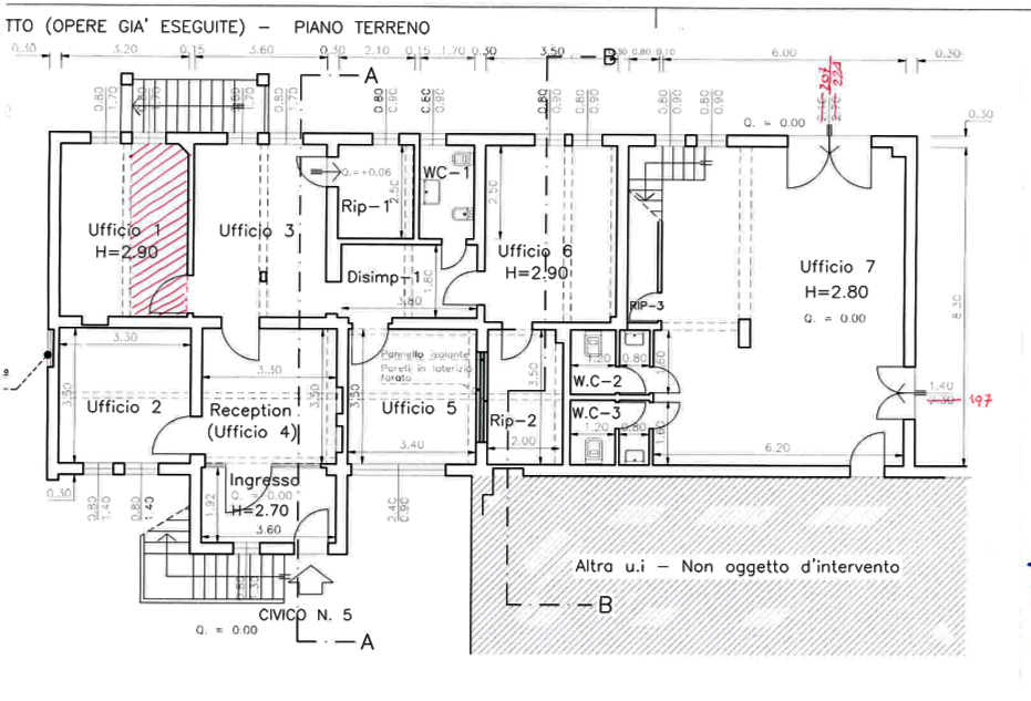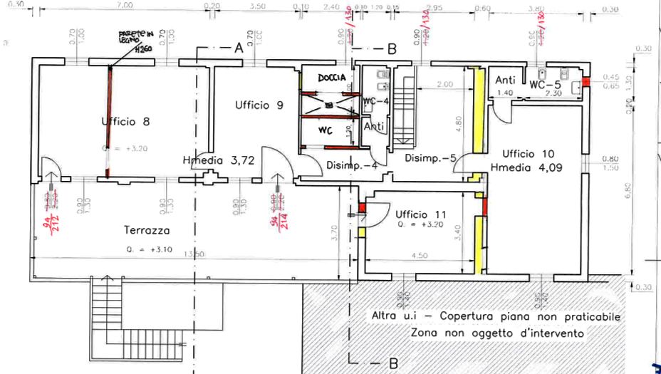 Questo ufficio di 381,00 mq si trova nel comune di Bologna (BO) in Via Saragat. L'immobile di 14 vani si sviluppa su tre livelli. Al piano terra, si compone da un ingresso, una reception, cinque locali uso ufficio, un disimpegno, un wc ed un locale ripostiglio. A detta porzione del piano terra si giunge attraverso un'area cortiliva. Sempre a detto piano ma non collegati con i restanti vani del piano terra è presente un locale ufficio con due wc e relativi antibagni e scala interna che porta ai locali del piano primo. Al piano primo si arriva attraverso una scala esterna e terrazza sempre passando dall'area cortiliva antistante. Al piano primo si arriva attraverso una scala esterna e terrazza. A detto piano sono presenti 5 locali ad uso ufficio, due disimpegni, due wc con anti bagno, un bagno ed un locale doccia oltre alla scala interna che porta al piano terra. Al piano interrato è presente un locale deposito/cantina, con accesso da una scala esterna che dal piano terra conduce all'interrato con soprastante copertura.