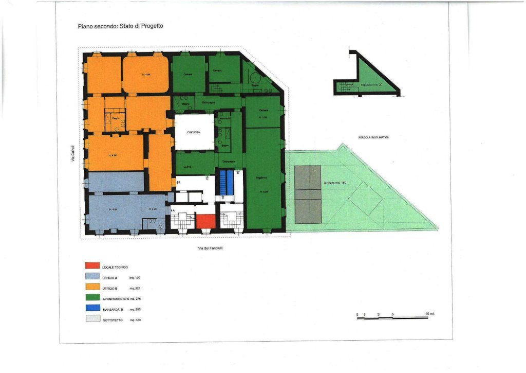 LIVORNO- VIA CAIROLI: Piano 2°, In palazzo d' epoca totalmente ristrutturate le parti condominiali da ristrutturare internamente, vendesi uso ufficio varie metrature a partire da 100 mq fino a 350 mq . Informazioni e planimetrie in ufficio. In questo caso per 223 mq ( NELLA PLANIMETRIA ZONA COLORE EVIDENZIATO IN ARANCIONE)