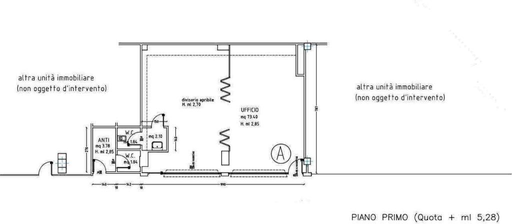 Proponiamo in vendita UFFICIO con INGRESSO INDIPENDENTE, doppio Accesso, da sistemare e da creare ex-novo invece l'impiantistica caldo/freddo. Si compone di un openspace oltre che di antibagno e bagno nuovi. Facile raggiungimento tramite scale esterne, piano PRIMO con affaccio riservato. Già libero e disponibile alla vendita. Ottimo anche da investimento per metterlo a reddito.