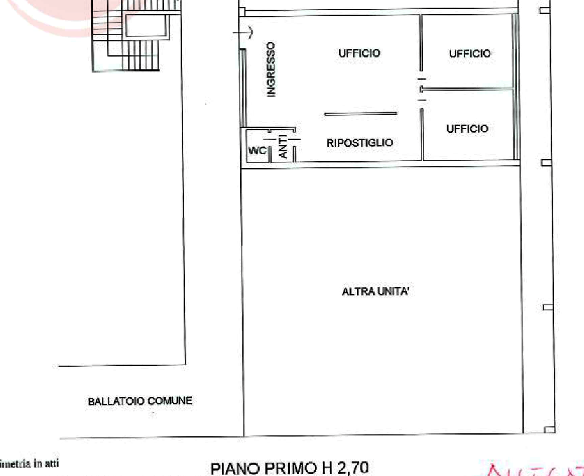 Ufficio al piano primo diviso in tre locali con locali accessori e servizi igienici per una superficie commerciale complessiva di 115 metri quadri, facente parte del complesso condominiale denominato "Codominio Manzoni" situato a Montegrotto Terme (PD) in Galleria Manzoni.