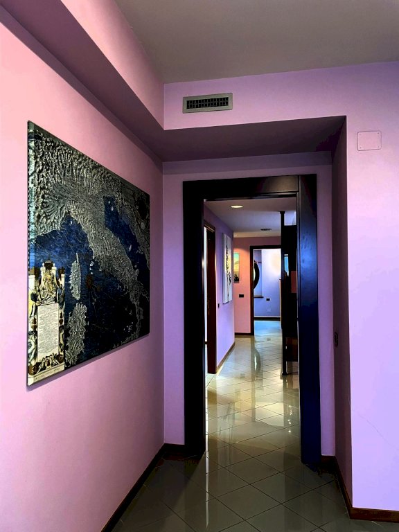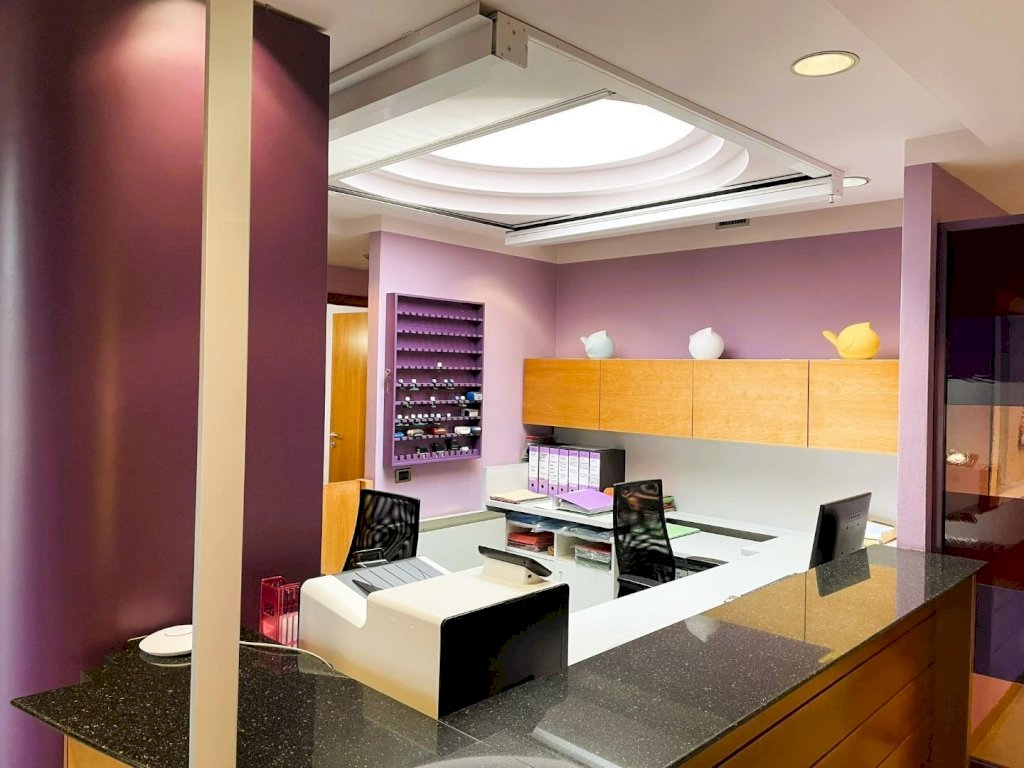 Situato in una posizione centrale, questo ampio ufficio all'ultimo piano di un edificio offre una superficie totale di circa 214 mq. Comprende 8 stanze, di cui un bagno, e una terrazza di circa 26 mq. È disponibile anche una cantina di circa 90 mq, al grezzo e senza impianti, con accesso interno. L'offerta include 3 posti auto riservati sul retro dell'edificio.