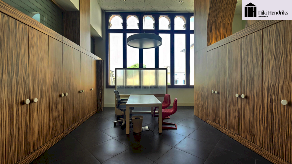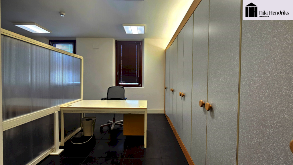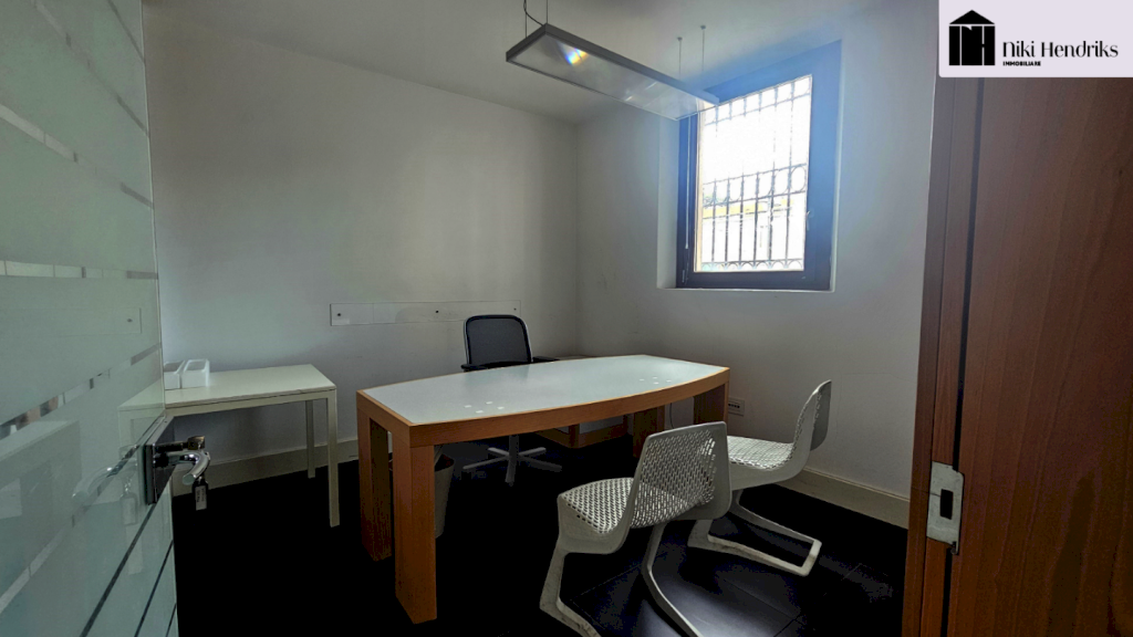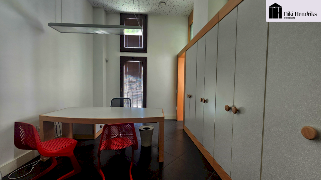 Ampio ingresso con elegante portone principale, reception/sala attesa, ufficio, sala archivio, vano tecnico, antibagno e bagno. Completa il piano una corte esclusiva con accesso a un comodo ripostiglio.