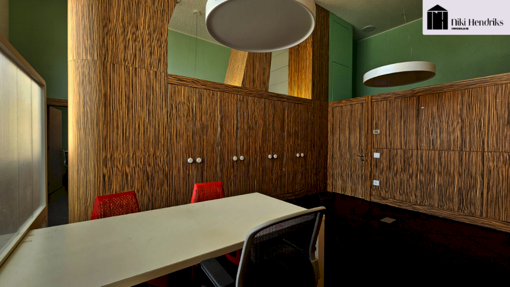 Accessibile sia tramite ascensore che da una raffinata scala in marmo nero, è composto da sala attesa, sala riunioni, uffici direzionali, segreteria, disimpegno, doppi servizi igienici con antibagno e ripostiglio.