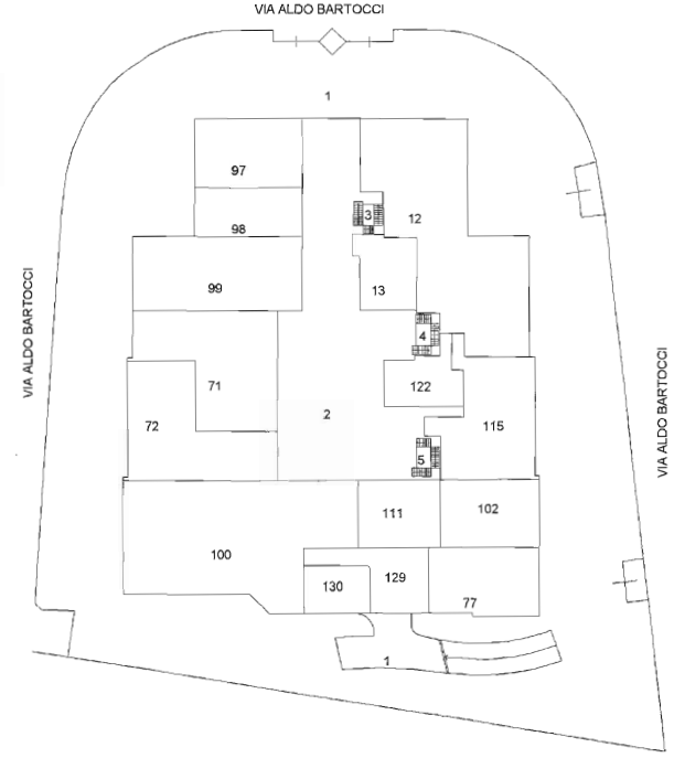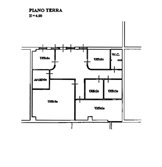 L'immobile è situato al piano terra dell'edificio ed è internamente composto da: un ingresso-sala d'aspetto, sei vani ufficio, un archivio, un
