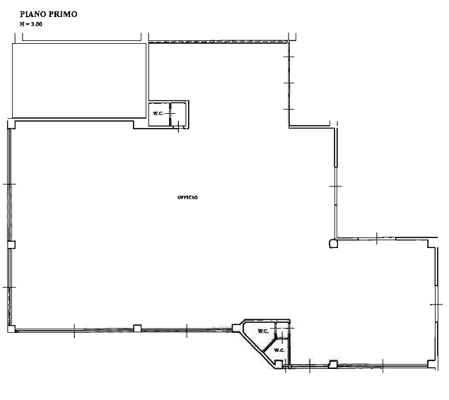 La seconda unità (B) è costituita da una piccola porzione di un grande locale direzionale, già utilizzato per attività di call-center, per una superficie complessiva di 76 mq.