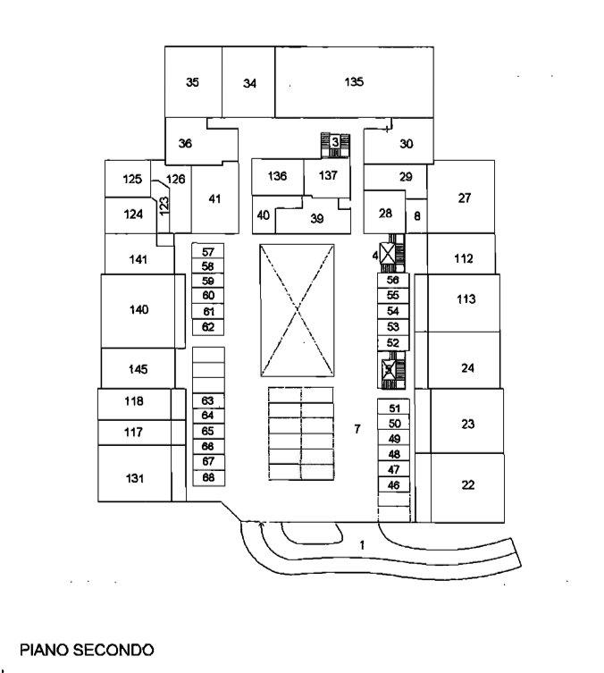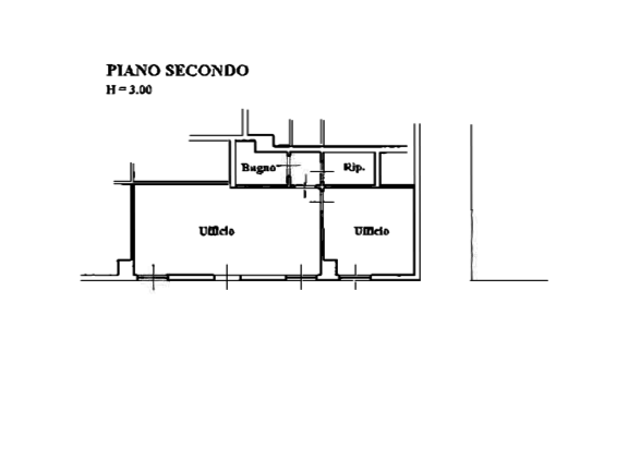 L'immobile è situato al piano secondo del fabbricato ed è internamente composto da: due vani ufficio, un disimpegno, un ripostiglio e un bagno per una superficie complessiva di 52mq.