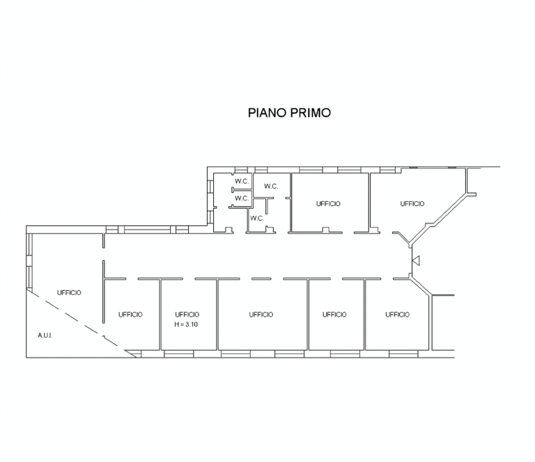 Ufficio posto al piano primo ed è composto da otto locali ad uso ufficio, corridoio e due bagni per una superficie totale di circa 268mq.