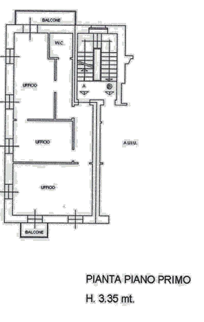 L'immobile è posto al piano primo ed è composto da tre locali uso ufficio, un ingresso, un corridoio di disimpegno e un bagno oltre a due balconi. L'immobile è situato in una zona comoda e ben collegata.
