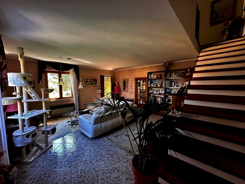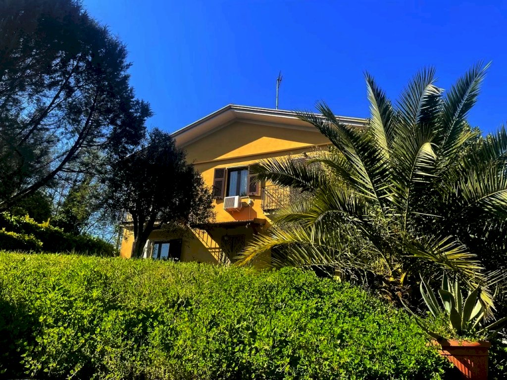 Bellissima villa unifamiliare in vendita! Situata in posizione collinare, soleggiata e panoramica, questa casa è vicina a tutti i servizi e i mezzi pubblici ma è defilata dal traffico. La villa è abitabile da subito e ha un giardino pianeggiante e posti auto privati. Si sviluppa su due livelli con un salone doppio, un'ampia cucina abitabile, un bagno con vasca idrogeologico-massaggio al piano terra, disimpegno e tre camere da letto con due balconi e un bagno al primo piano. Inoltre, c'è una taverna con bagno al piano inferiore collegata con una scala interna. La casa dispone di riscaldamento autonomo e impianto di aria condizionata. La superficie commerciale è di 210 mq e il terreno è di 500 mq. I mezzi pubblici e i servizi sono a soli 500 metri dalla casa e la distanza dal mare è di 6 km in auto. Contattaci subito per organizzare una visita!