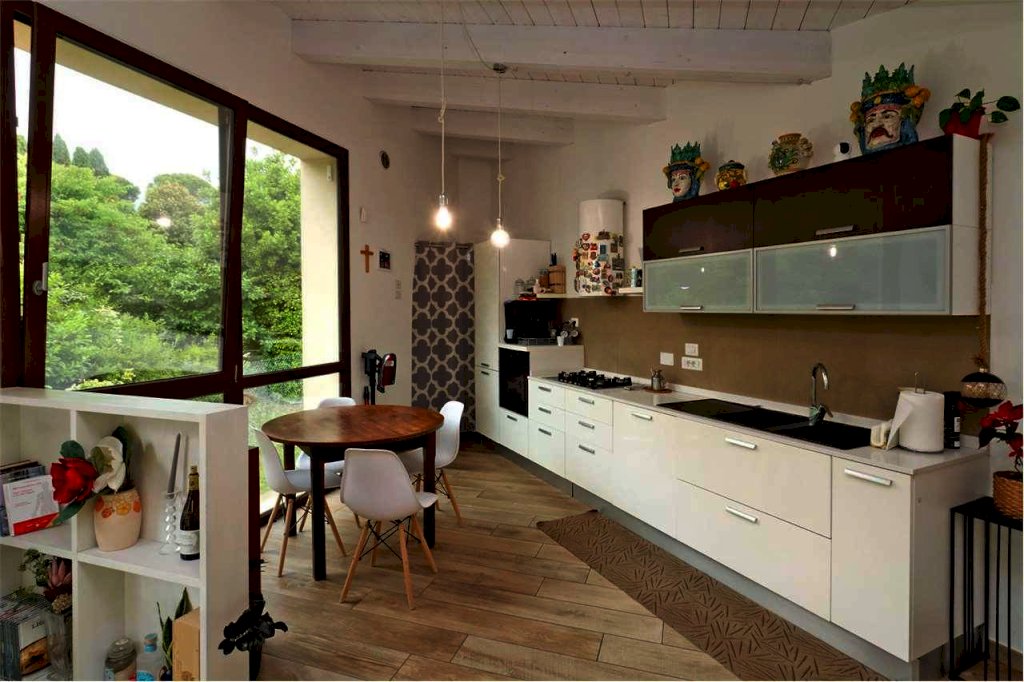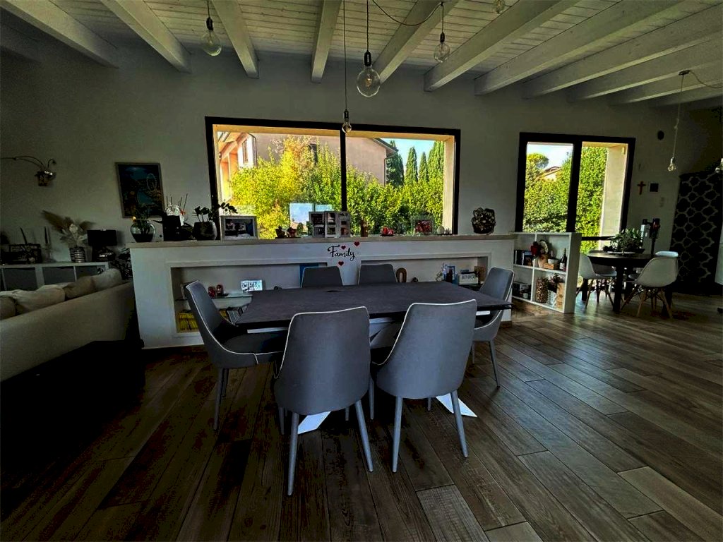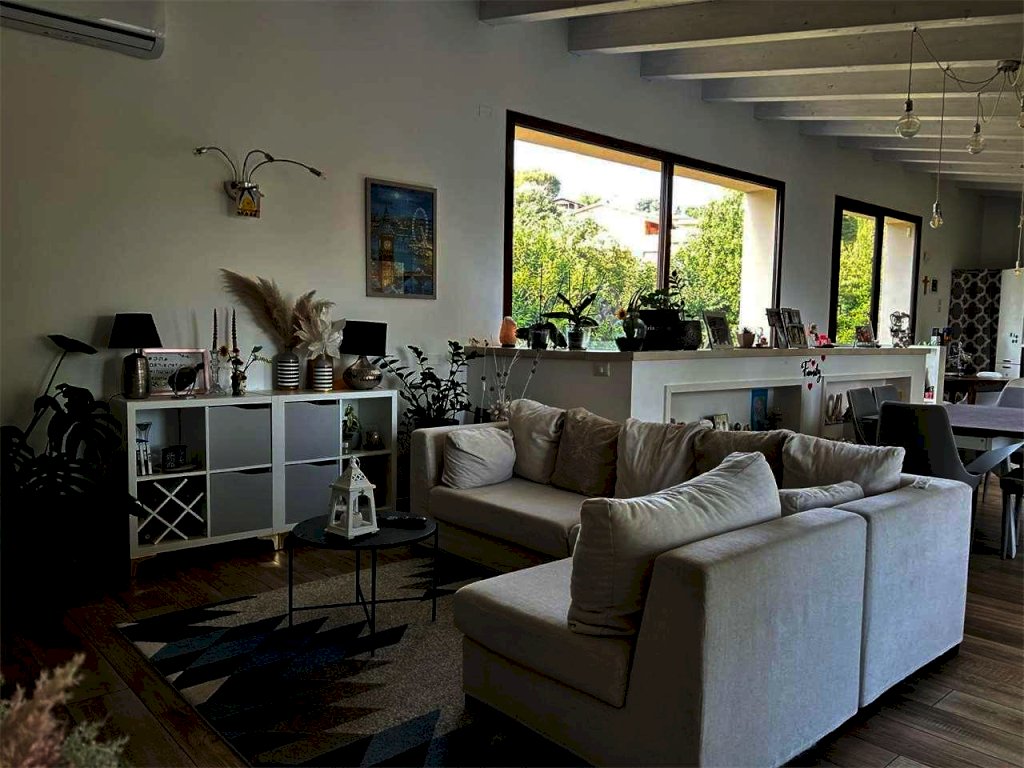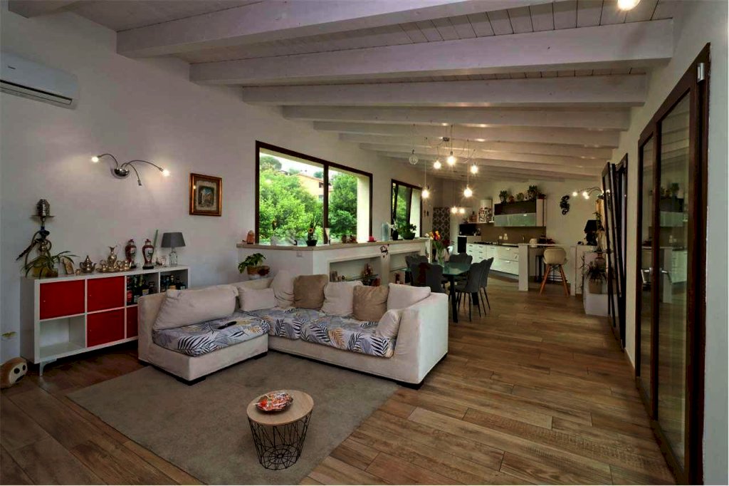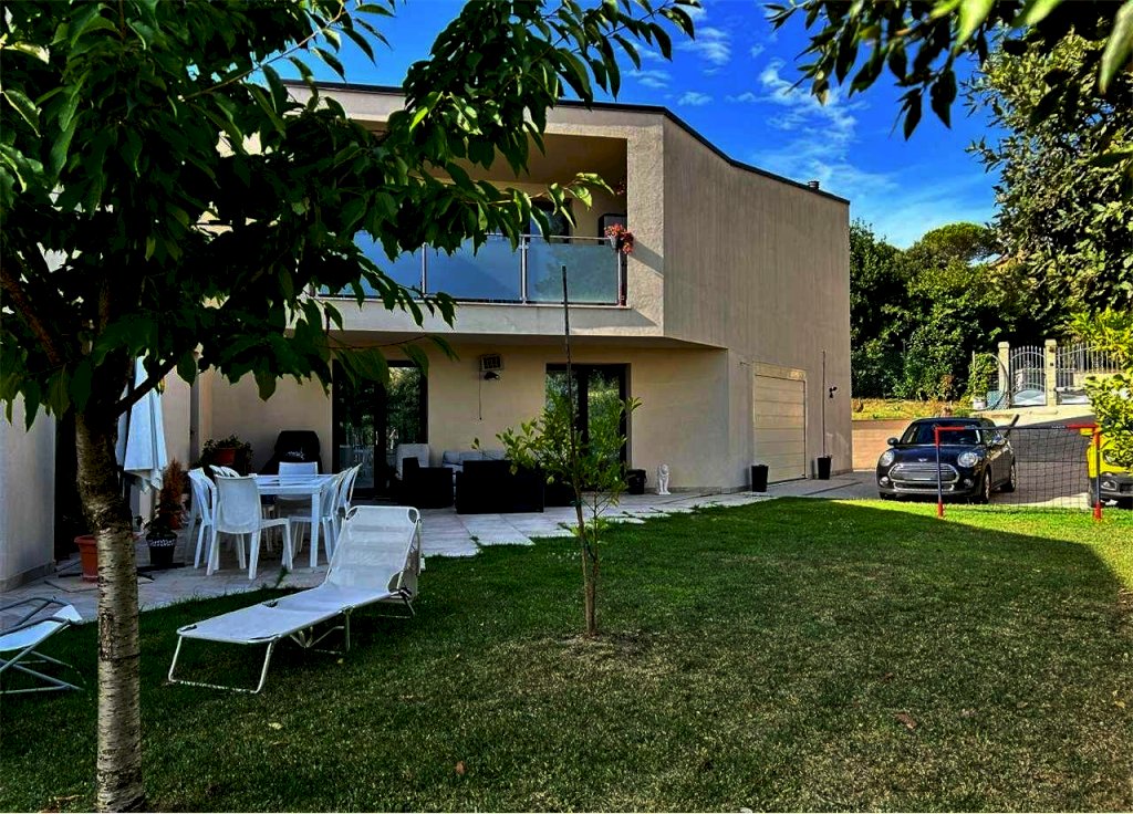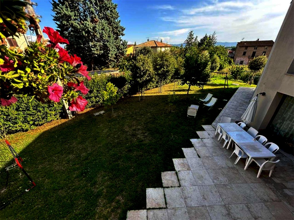 A Palazzo di Assisi, in zona residenziale a ridosso dei principali servizi, proponiamo in vendita moderna ed elegante villa indipendente disposta su due livelli, della superficie commerciale complessiva di circa 300 mq. L'immobile, di recente costruzione ed in ottimo stato, è attualmente diviso in due appartamenti indipendenti autonomi. L'appartamento padronale, di circa 200 mq, si sviluppa su due piani: al piano terra troviamo un ampio disimpegno attualmente adibito a studio, salendo al piano primo abbiamo un comodo e luminoso soggiorno dotato di ampie vetrate, cucina a vista ed accesso ad un balcone abitabile della superficie di circa 15 mq, tre camere da letto di cui una con balcone e cabina armadio e due bagni. Appartamento dotato di impianto di riscaldamento a pavimento. Il secondo appartamento, al piano terra, della superficie complessiva di circa 80 mq, si compone di soggiorno con cucina a vista con accesso diretto al giardino, disimpegno, bagno e due camere da letto. Attualmente è locato ad un canone mensile pari ad EURO 600. Completano la proprietà garage al piano terra di circa 30 mq dotato di porta basculante motorizzata e giardino esclusivo di circa 500 mq con irrigazione automatica e sistema di illuminazione esterna. Finiture di alto livello. Impianto di allarme volumetrico e perimetrale. Predisposizione impianto di videosorveglianza ed impianto di aspirazione centralizzato. Portoni blindati. Infissi in alluminio con doppio vetro ed ante a ribalta. Impianto fotovoltaico e solare termico. Impianto di condizionamento. Vasca di raccolta acque piovane. Proprietà interamente recintata con accesso pedonale e carrabile.