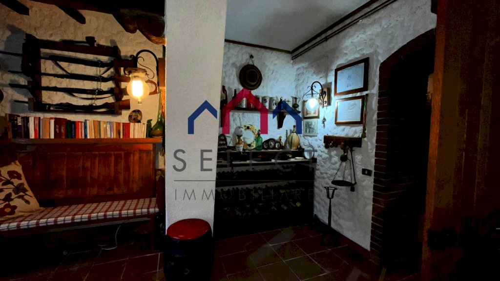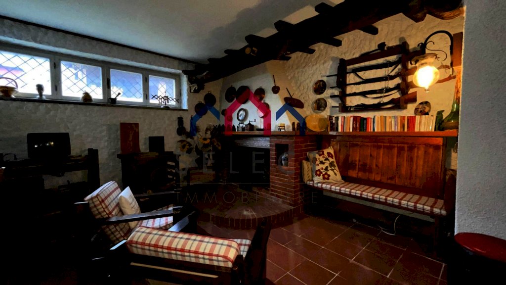 Al piano sottostante, parzialmente seminterrato, al quale si accede anche a mezzo scale interne, abbiamo un vano cantinetta dei vini, dei vani uso lavanderia, cucinotto e ripostiglio, la bella taverna con camino a legna ed il garage.
