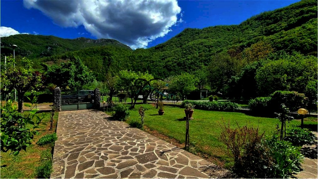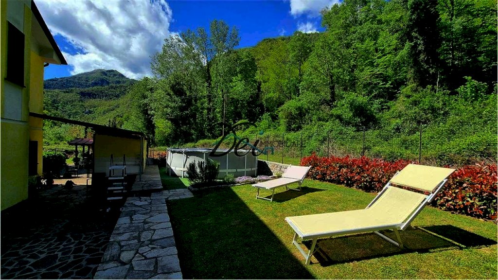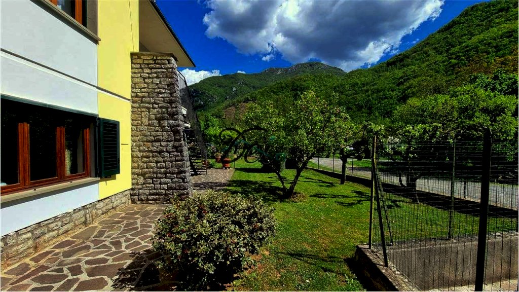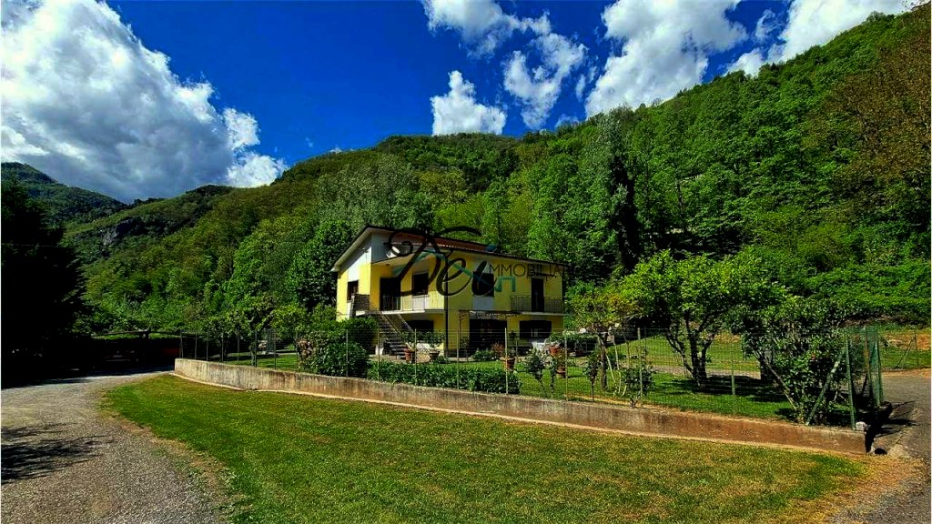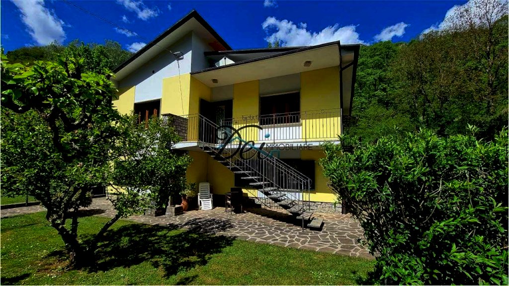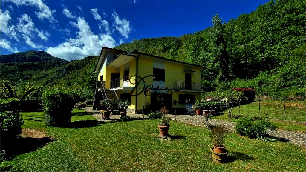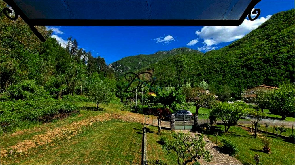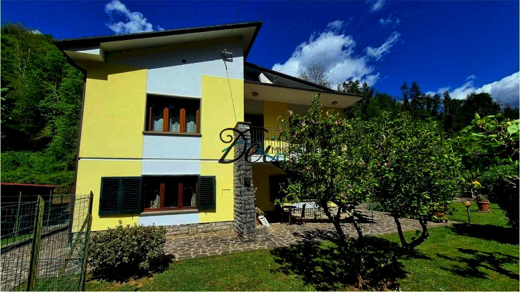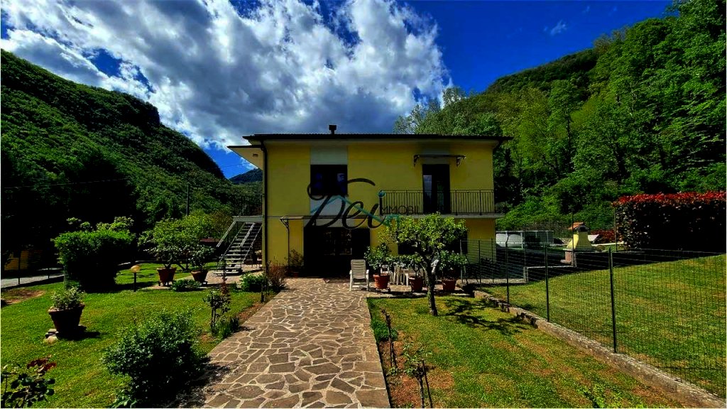 BAGNI DI LUCCA - Villa singola con ampio giardino, situata a 10 km dal centro di Bagni di Lucca, in posizione riservata, con splendida vista delle verdi colline circostanti e a breve distanza dal torrente Lima, rinomato per le sue piscine naturali dalle acque limpide, per il centro rafting-canoa e il canyon park avventura. La villa ha una superficie di circa 200 mq, si sviluppa su due livelli ed è così composta: Piano Terra: ingresso, ampia taverna con camino, spazioso vano usato come cucina, disimpegno, grande stanza con letto matrimoniale, ripostiglio, bagno con vasca e locale caldaia; Primo Piano: ingresso, disimpegno, due camere matrimoniali, soggiorno o terza camera matrimoniale, cucina abitabile con terrazzo e bagno con doccia. I due piani sono collegati da una scala interna, ma è anche possibile accedere al primo piano tramite una scala esterna, offrendo la possibilità di rendere indipendenti i due livelli. La proprietà è corredata da un ampio giardino recintato con alcune parti lastricate in pietra e da un appezzamento di terreno ad uso ortivo. La casa è dotata di infissi in legno di castagno con vetro doppio e di impianto di riscaldamento con termocamino e caldaia a gasolio. Ideale sia come residenza che come casa vacanze. La zona di Bagni di Lucca offre una vasta gamma di attività, tra cui i percorsi per il trekking, pittoreschi borghi sulle colline, rafting e canyon park sul fiume Lima, tennis club, teatro accademico e piscine comunali. Distanze: 10 km da Bagni di Lucca, 30 km da Lucca, 55 km da Pisa, 100 km da Firenze, 60 km dalla Versilia (mare), 35 km dall'Abetone (piste da sci).