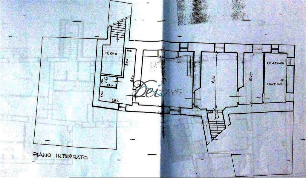 PIANO SEMINTERRATO: varie stanze adibite a taverna con volte, salone, cantina dei vini, locale caldaia e ripostigli.