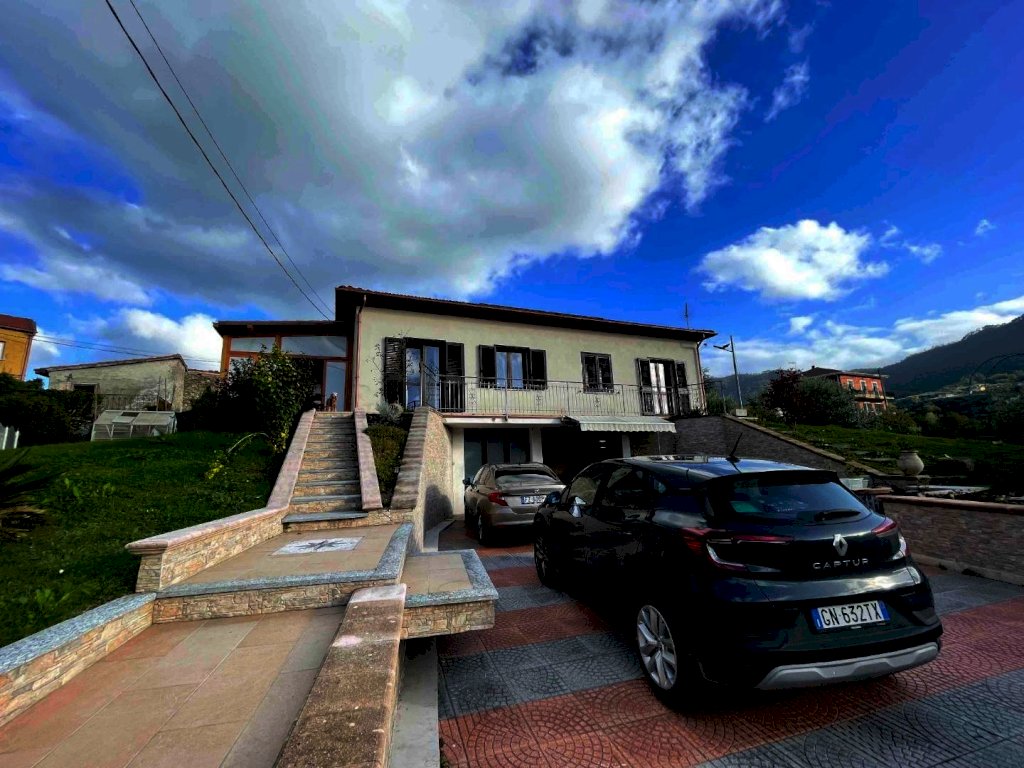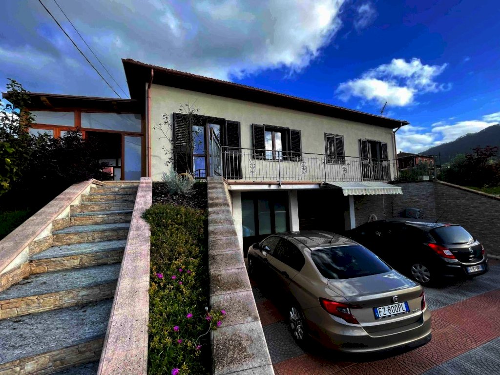 Nostra esclusiva, in vendita a Beverino, vicino ad ogni servizio, splendida villa di recente costruzione (2021) con ingresso indipendente, disposta su due livelli, con posti auto, garage, cantina e terreno circostante e pianeggiante. La proprietà si estende su una superficie di mq. 236 offrendo ampi spazi abitativi e versatilità di utilizzo ed è composta da porticato, cantina/taverna con locale tecnico, bagno con doccia e garage di mq. 60 al piano terra e da ingresso in ampia veranda, grande salone con zona cucina con accesso al giardino, disimpegno, tre camere matrimoniali e due bagni (uno con doccia ed un con vasca). L'immobile è stato realizzato con il cappotto termico, pannelli solari, impianto fotovoltaico e infissi a taglio termico con doppia apertura, ecc. Giardino pianeggiante, area esterna piastrellata e terrazze di mq. 900. Pozzo artesiano con pompa e laghetto. Un'opportunità unica per chi cerca comfort, eleganza e praticità in un contesto residenziale di pregio.
