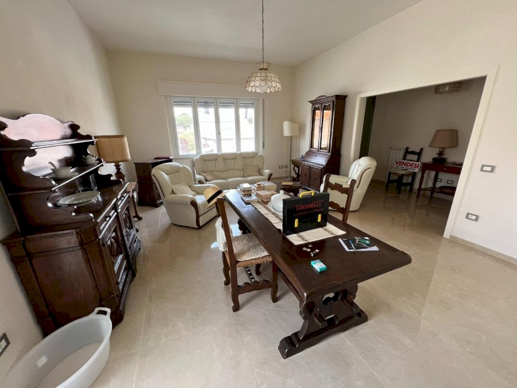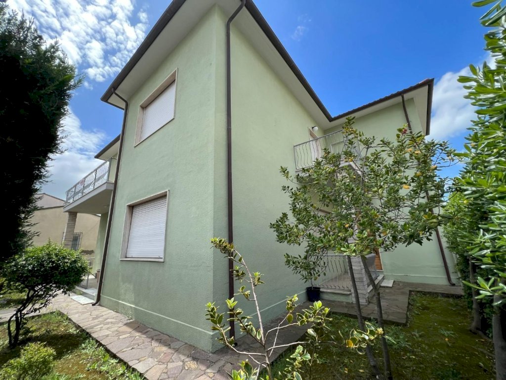 L'appartamento al piano primo, completamente ristrutturato, ha accesso da scala interna indipendente ed è così composto: ingresso-soggiorno, cucina abitabile,3 ampie camere matrimoniali, disimpegno, bagno con doccia e finestra e due terrazzi. La villa è circondata da giardino su 4 lati. con possibilità di ampliamento. Le finiture sono di ottime livello commerciale: pavimenti in ceramica effetto marmorizzato, porte interne in legno, laccate colore bianco , avvolgibili in PVC, finestre in PVC con vetro camera. Termoautonomo a metano.