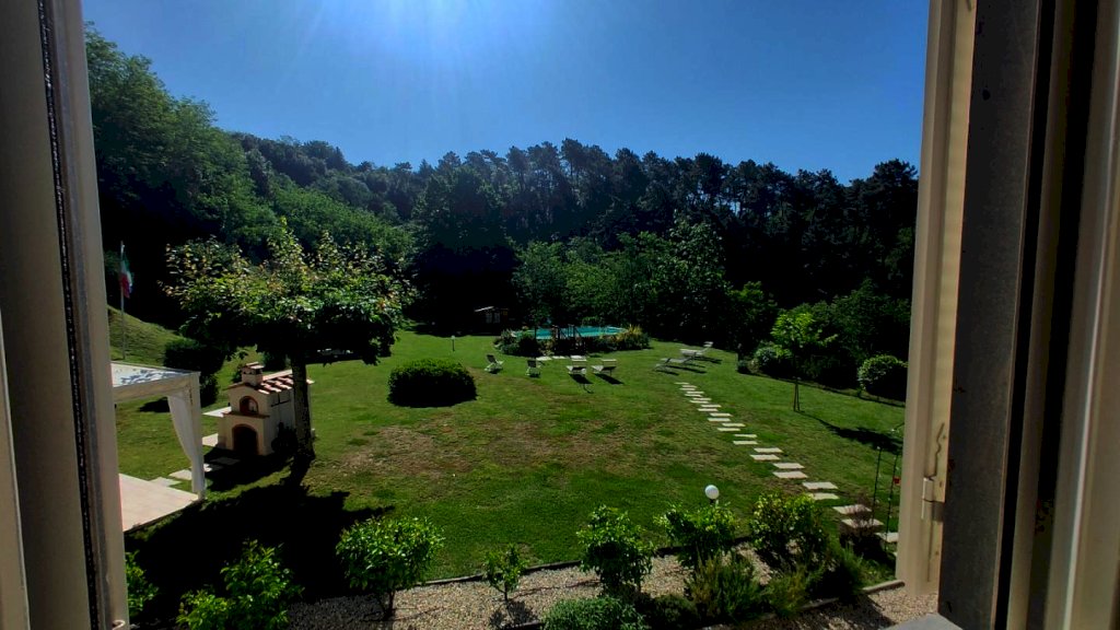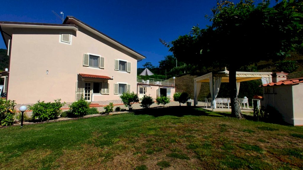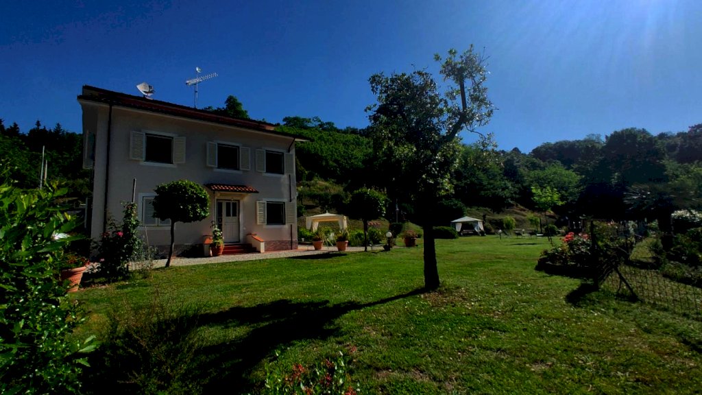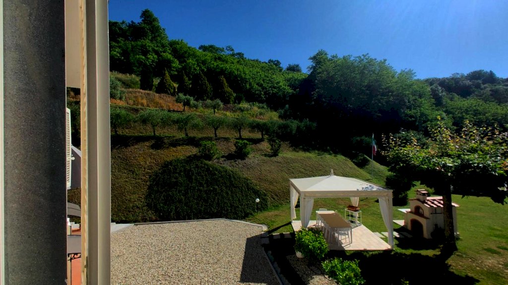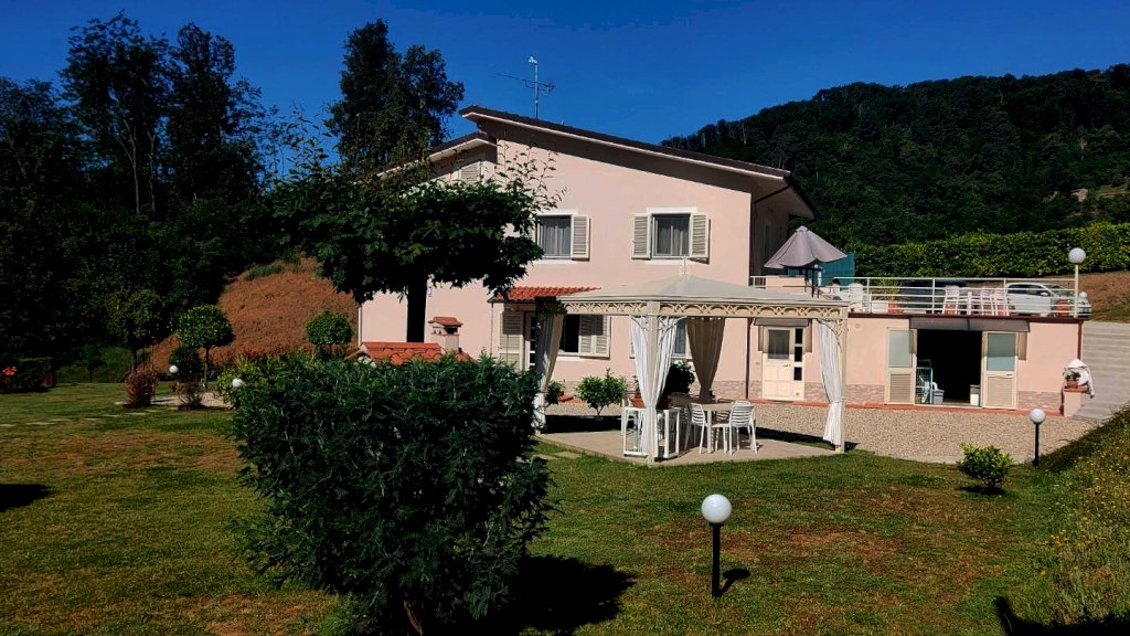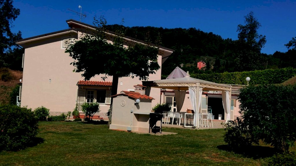 Collina tra Lucca e Camaiore villa di circa 200 m2 su due livelli composto da al piano terra: ingresso - tre camere matrimoniali ognuno col bagno in camere - ripostiglio ad uso cucina estiva e garage/ripostiglio piano 1: sala - cucina abitabile - camera matrimoniale con bagno in camera - camera e studio - bagno. - grande terrazza abitabile. Giardino con due gazebo e piscina. Terreno in parte bosco e vigneto e uliveto. Nel bosco si trova un rudere . La villa รจ in ottime condizioni con vista bellissima e solleggiata con buon accesso alla costa Versilia. Attualmente viene affittata come casa vacanza.