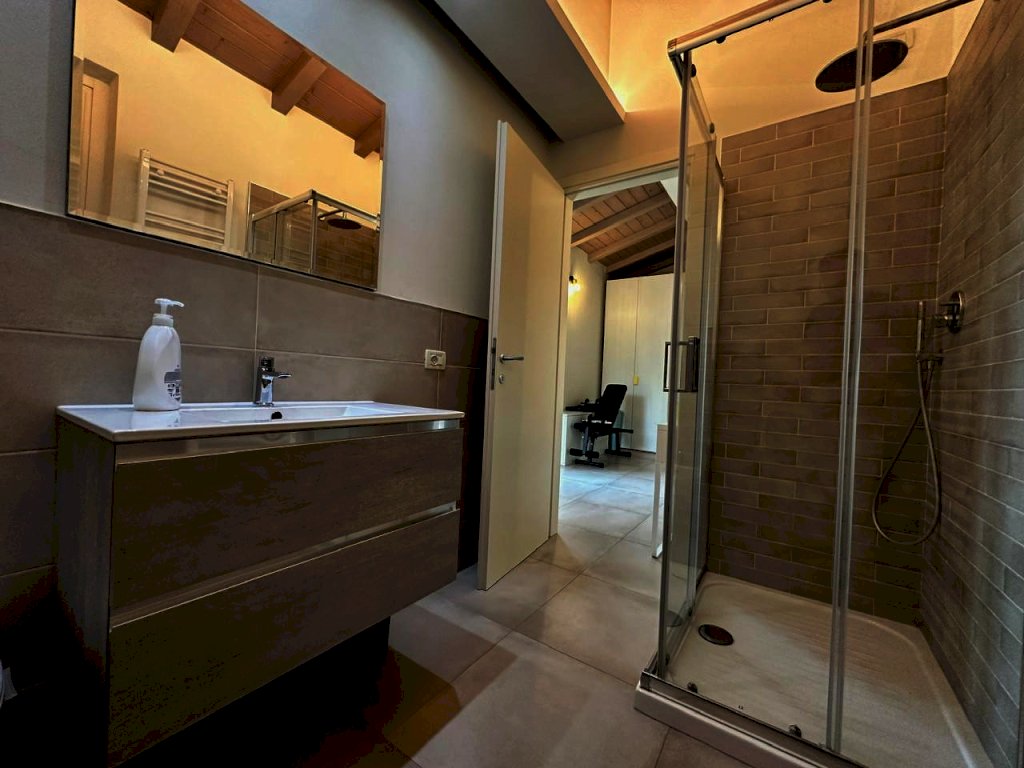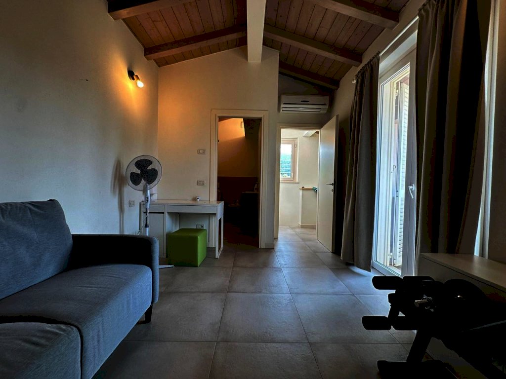 attraverso un piccolo disimpegno si accede alla zona notte dove troviamo una camera matrimoniale, una camera media e bagno.Tramite una scala interna si passa al piano primo dove troviamo la terza camera con il bagno privato.