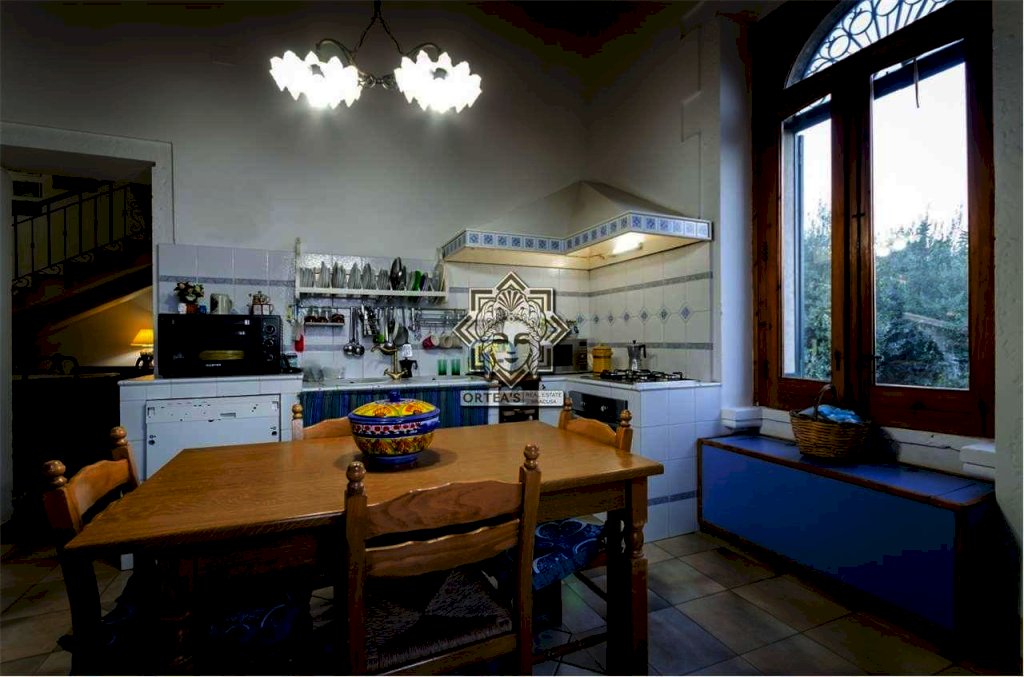 Al suo interno questa fascinosa villa dispone di un salone doppio con camino d'epoca ancora funzionante, una cucina abitabile, un locale bagno e una sala da pranzo che è anche un grande disimpegno che fa da collegamento tra tutti gli ambienti caratterizzati da porte sormontate da stipiti in pietra bianca e dove trova allocazione la scala di accesso per raggiungere la zona notte al piano superiore con le caratteristiche di una mansarda con particolari travi in legno a vista e dove si trovano le tre camere da letto, un grande locale bagno e il terrazzino dal quale la vista si perde all'orizzonte potendo anche ammirare ad una quota più alta Il maestoso edificio sede del Seminario Arcivescovile della Provincia di Siracusa. Da tutti gli ambienti è possibile godere della vista panoramica che la fa da padrone anche al crepuscolo quando il paese di Canicattini Bagni e la città di Siracusa con la sua isola di Ortigia centro storico che si tingono di colori caldi con sfumature e riflessi di luce tra il rosso e il giallo.