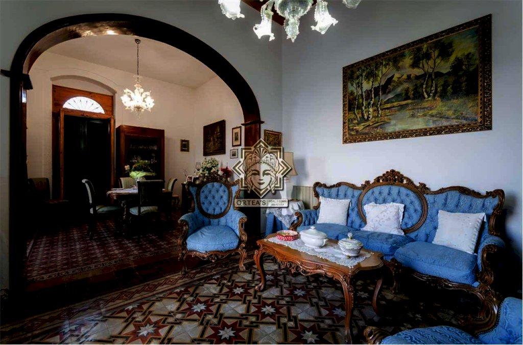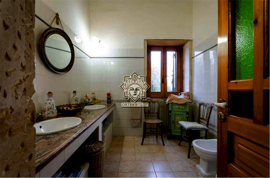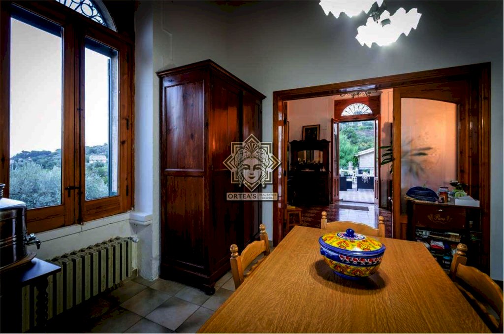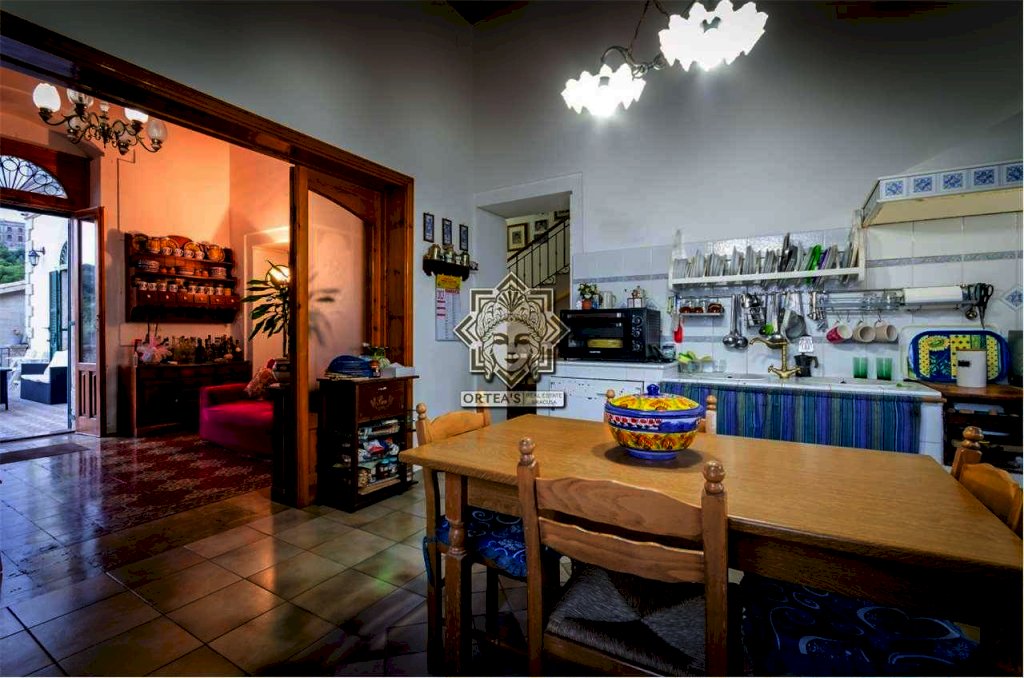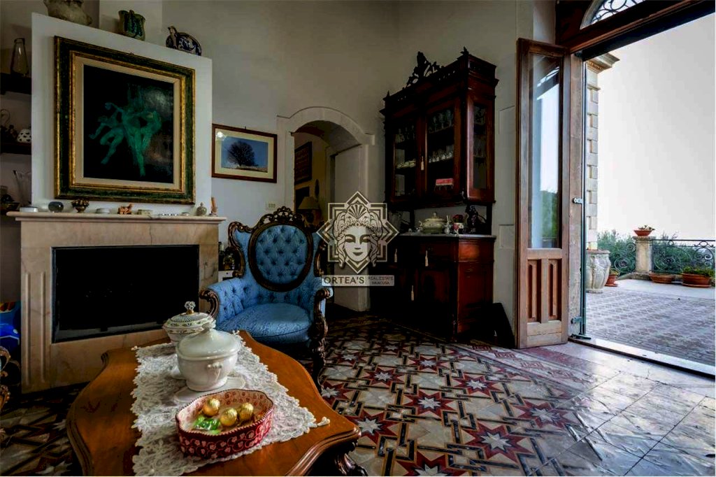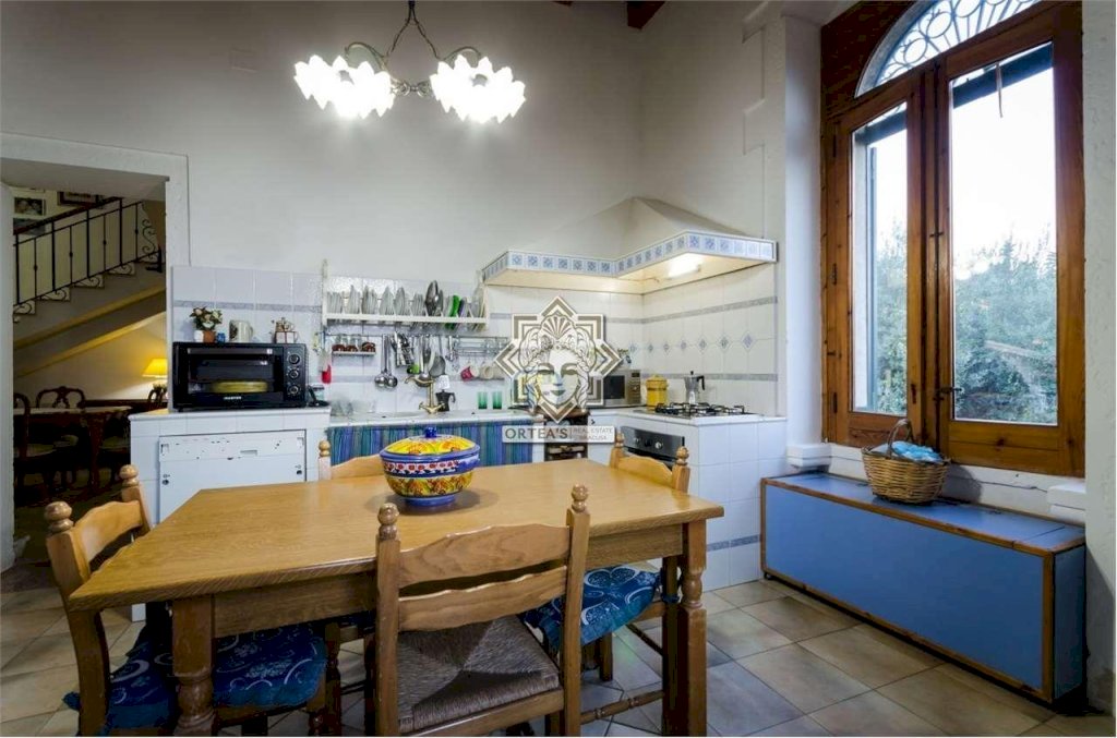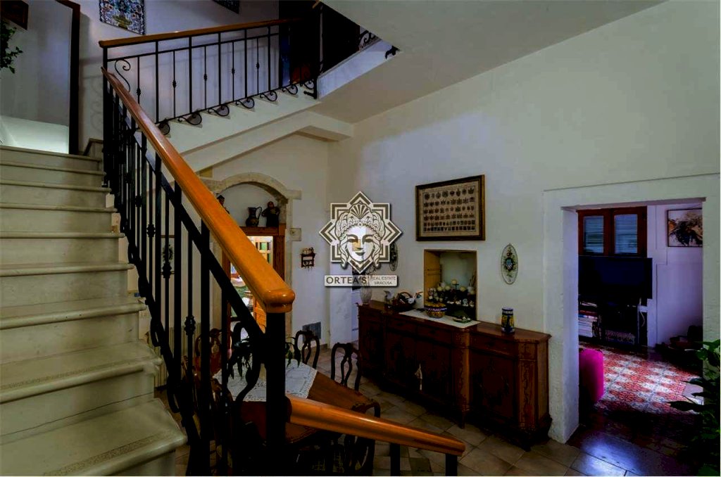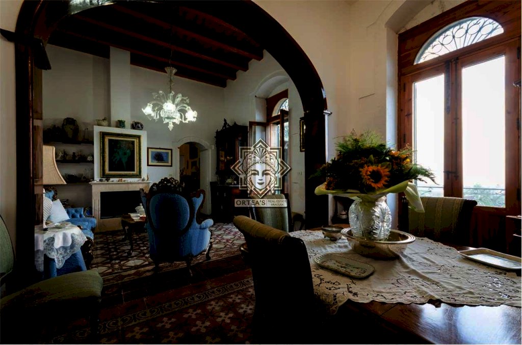 Al suo interno questa fascinosa villa dispone di un salone doppio con camino d'epoca ancora funzionante, una cucina abitabile, un locale bagno e una sala da pranzo che è anche un grande disimpegno che fa da collegamento tra tutti gli ambienti caratterizzati da porte sormontate da stipiti in pietra bianca e dove trova allocazione la scala di accesso per raggiungere la zona notte al piano superiore con le caratteristiche di una mansarda con particolari travi in legno a vista e dove si trovano le tre camere da letto, un grande locale bagno e il terrazzino dal quale la vista si perde all'orizzonte potendo anche ammirare ad una quota più alta Il maestoso edificio sede del Seminario Arcivescovile della Provincia di Siracusa. Da tutti gli ambienti è possibile godere della vista panoramica che la fa da padrone anche al crepuscolo quando il paese di Canicattini Bagni e la città di Siracusa con la sua isola di Ortigia centro storico che si tingono di colori caldi con sfumature e riflessi di luce tra il rosso e il giallo.