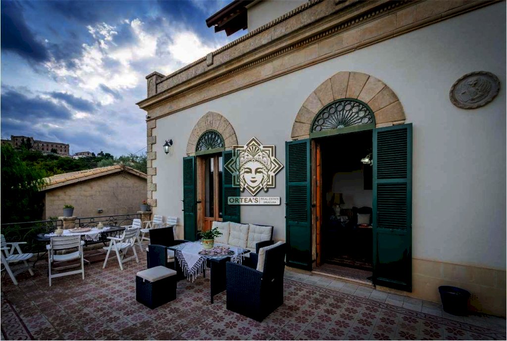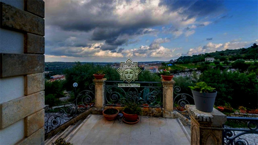 La posizione di questa villa è dominante con la sua vista impagabile, da dove con lo sguardo che si perde potendo osservare in un colpo d'occhio il profilo unico del vulcano Etna, il suggestivo porto di Siracusa con l'isola di Ortigia e la punta più a sud della Sicilia di Capo Passero con l'isola delle correnti a chiudere questa spettacolare cornice naturale.