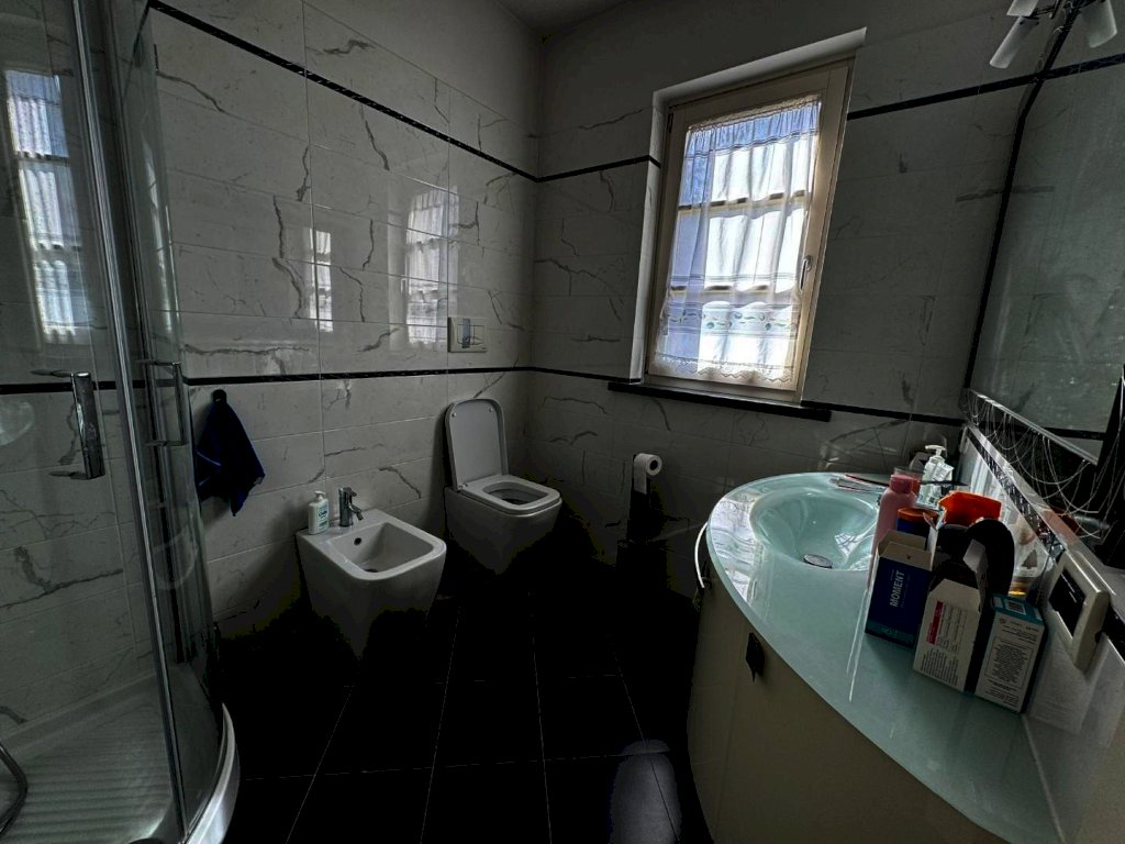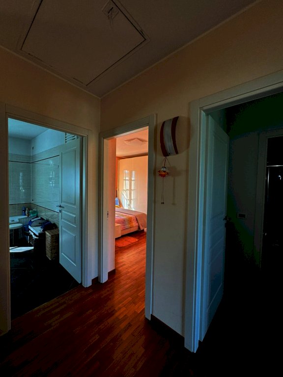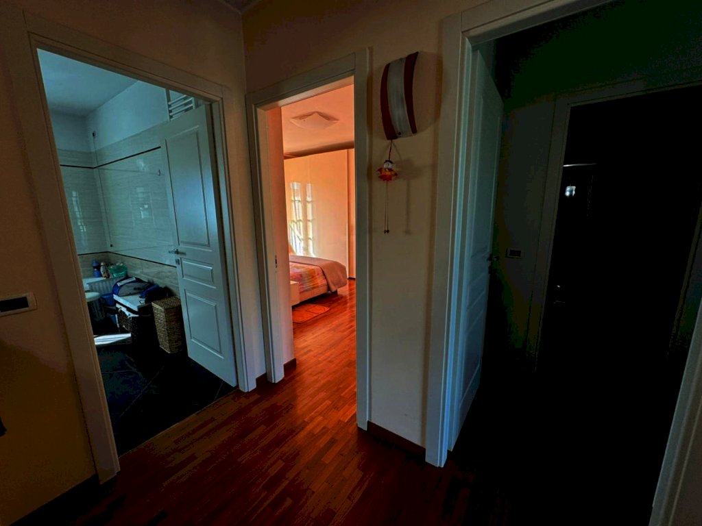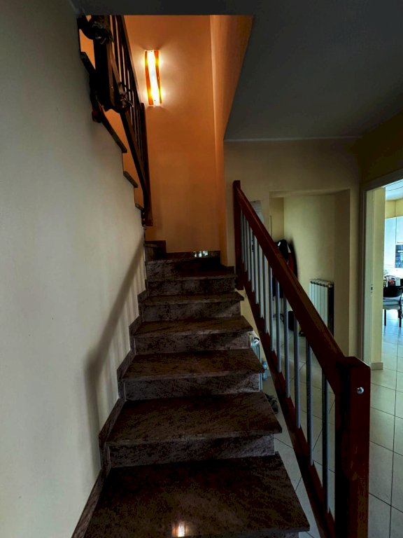 La villa si sviluppa su due livelli. Al piano terra troviamo un ampio e luminoso soggiorno, dove è stato ricavato un angolo studio, una spaziosa cucina abitabile, un disimpegno e un bagno finestrato con doccia. Attraverso una comoda scala interna si accede al piano superiore, dove si sviluppa la zona notte composta da due camere matrimoniali, di cui una con bagno privato e terrazzo, una camera singola anch’essa con terrazzo, e un ulteriore bagno a servizio del piano.