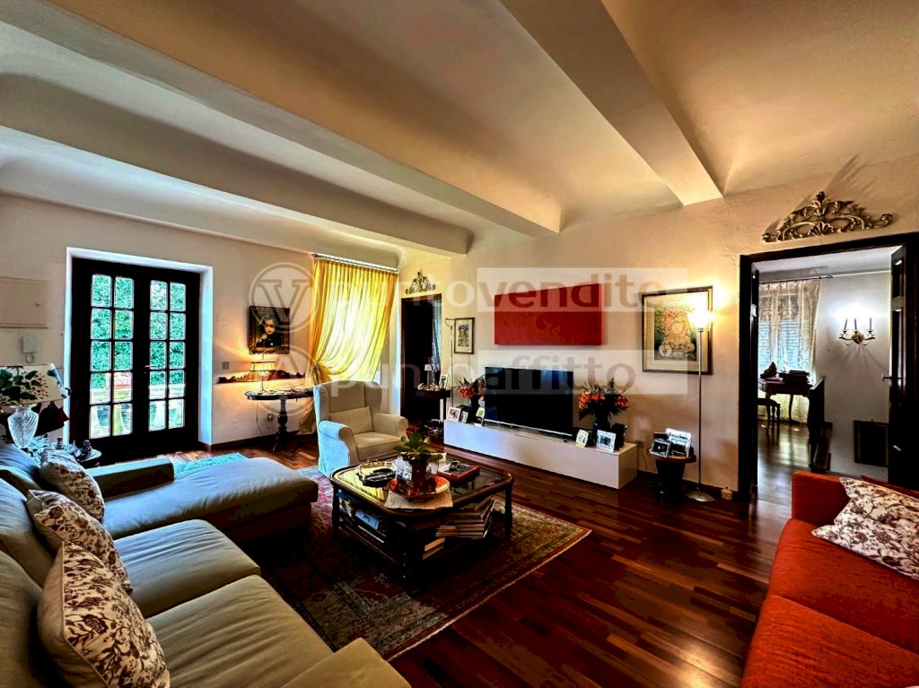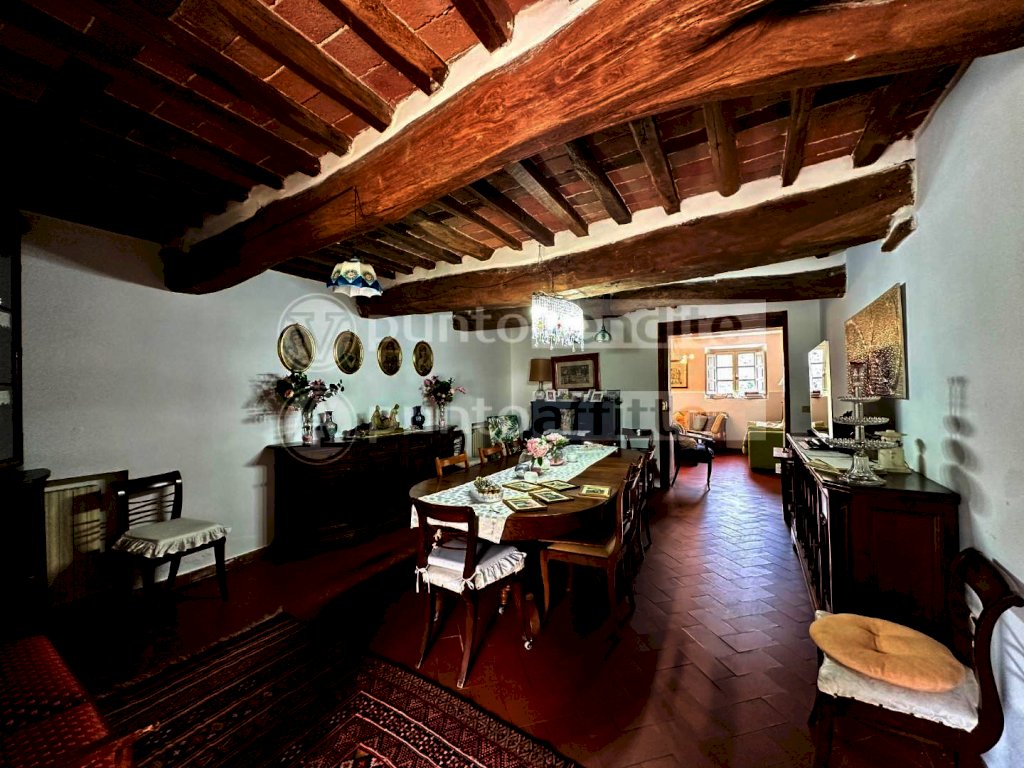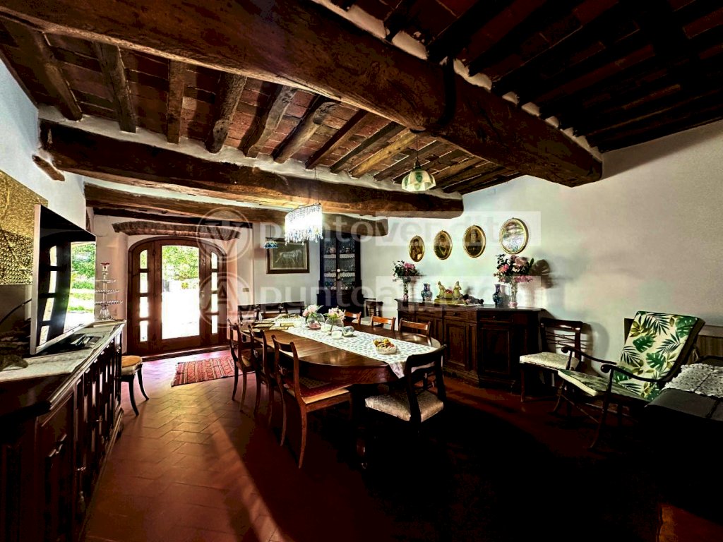 RIF. 9409 - PORZIONE DI VILLA IN VENDITA CON GIARDINO E GARAGE - Nella zona sud di Lucca, a Guamo, a circa 5 km dal centro storico, porzione di villa storica di complessivi 380 mq. Il piano nobile si compone di un ampio salone con camino, sala da pranzo, cucina abitabile, disimpegno notte, due camere matrimoniali, stanza armadi, bagno finestrato con vasca e studio, utilizzabile anche come terza camera. Al piano terra, troviamo un grande salone open space con camino, cucina abitabile con forno a legna e caminetto, due camere, bagno finestrato con doccia e un porticato esterno. L'altezza del piano terra è di 2,50 m ed è regolarmente condonata. I due livelli sono collegati internamente da una comoda scala in pietra, ma dispongono anche di ingressi indipendenti, offrendo così la possibilità di ospitare due nuclei familiari. Completano la proprietà un garage di 50 mq e un giardino recintato di circa 1.300 mq con cancello carrabile automatico. L’immobile si presenta in ottime condizioni di manutenzione. Possibilità di acquistare anche l’unità immobiliare al secondo e ultimo piano, rendendo così l’intera villa completamente indipendente.