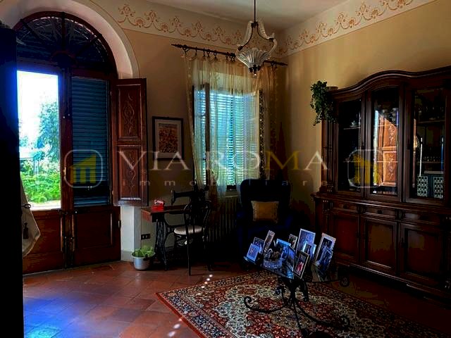 Villa primi novecento, completamente ristrutturata esternamente e internamente, mantenendo le caratteristiche dell'epoca, con il rifacimento delle pitture originali della facciata esterna. Disposta su tre livelli, la casa si presta all'utilizzo anche di tre nuclei familiari. Corredata da ampio giardino con aia e viale con 4 posti auto, ampia cantina uso ripostiglio di circa 50 mq. Al piano terra sala di ingresso, cucina tinello con caminetto, bagno e due camere, al primo piano quattro ampie camere un balcone e bagno, al secondo piano altre quattro vani, balcone e bagno. Ampia soffitta uso ripostiglio. Perfette condizioni di manutenzione, posizionata in zona residenziale e con affacci panoramici.