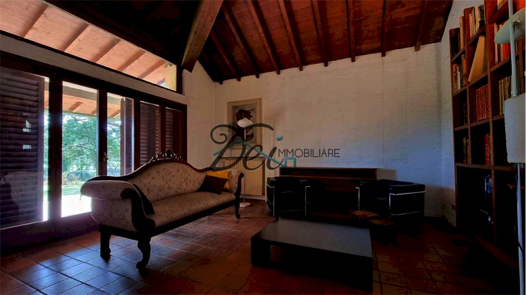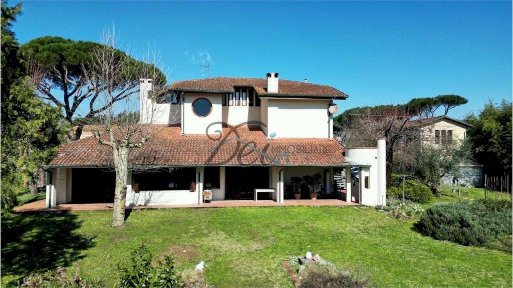 L'immobile è circondato da un parco privato recintato di 4000 mq, impreziosito da piante sempreverdi e da un uliveto ed è corredato da un caratteristico rustico in stile toscano su due livelli.