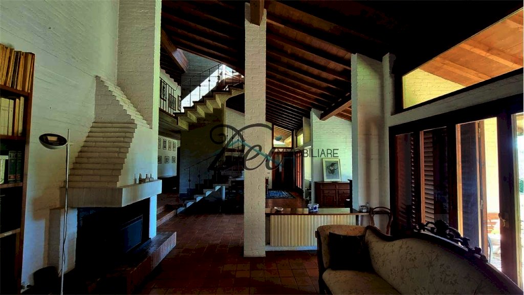 Al piano terra si entra in un meraviglioso soggiorno a doppio volume, organizzato in tre grandi ambienti open space a uso soggiorno con camino, sala da pranzo e studio, con scale a vista in legno e cemento dal design unico. Sempre al piano terra vi sono una cucina abitabile, tre camere, bagno con doccia e un ampio porticato. Dalle scale a vista si accede al ballatoio che conduce a una camera matrimoniale con bagno e terrazza con vista sulle colline.