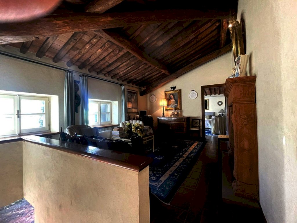 La bella scala in pietra ci accompagna al piano primo che ha la particolarità di avere i soffitti con i travi in legno e mezzane di cotto a vista. Qui troviamo un ampio e accogliente locale a giorno, un disimpegno per la zona notte composta da un bagno, 4 grandi camere di cui una padronale con stanza armadi e bagno privato.